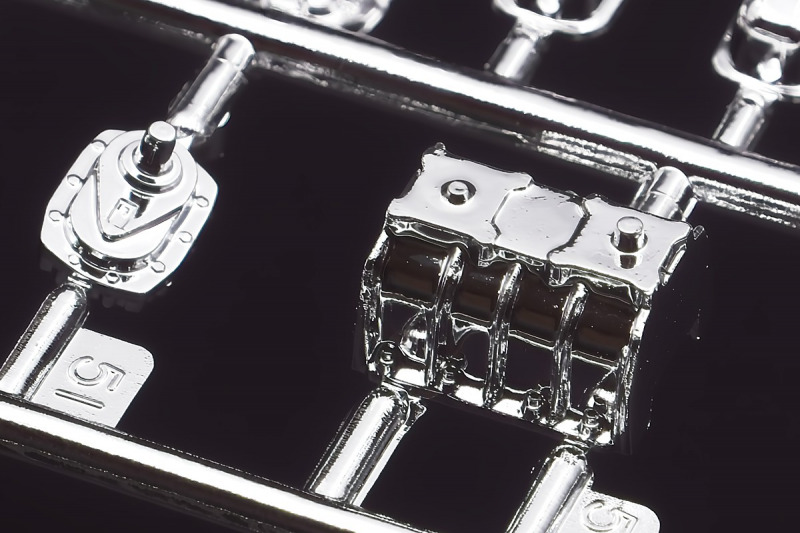 Die üppigen Chromteile sind ausnahmsweise mal recht brauchbar, auf das Entfernen der Chromschicht kann man - glaube ich - verzichten, die Corvette ist nur mit relativ zierlichen Chromteilen bestückt. Wenn der Glanz zu sehr stört, kann man den ja mit Mattlack etwas abmildern.