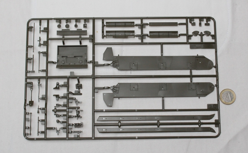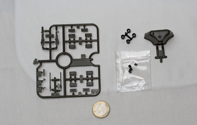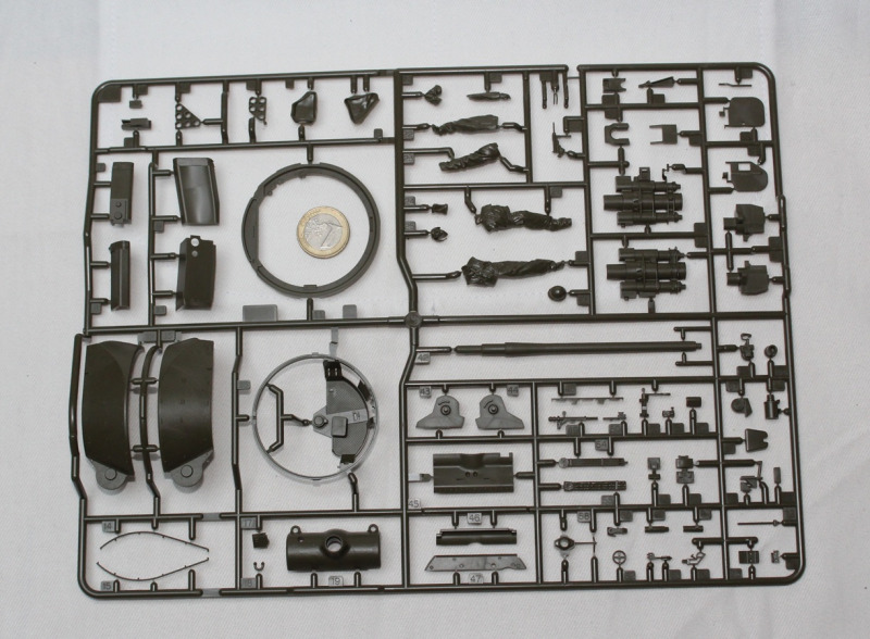 Für das Neukonzept des Bausatzes mag auch die beiliegende Figur stehen, die aus elf Teilen zusammengebaut wird. Allerdings folgt die Aufteilung nicht einem klassischen Muster (Kopf – Torso – Extremitäten), sondern versucht die Komponenten baufreundlich und doch detailreich zu konstruieren. So ist beispielsweise eine Hand schon an der Maschinenpistole angespritzt. Den Finger am Abzug schaffte man bei konventionellen Figuren bisher nur sehr schwer. Überhaupt scheint ein wesentliches Konstruktionsprinzip bei Tamiya gewesen zu sein, immer wieder von Seiten der Modellbauer Bemängeltes endlich anzugehen und nicht wieder eine „Neuauflage“ mit neuem Deckelbild aus alten Formen zu präsentieren. Auch das Thema Auslösen der Teile wurde ernst genommen. Das Nacharbeiten an den Teilen sollten sich weitgehend erübrigen.