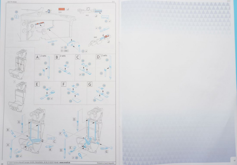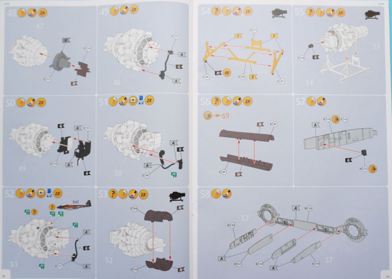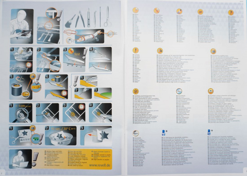 Bloß nicht abheben!Puh, das sind wirklich überbordende Zeilen, bei gleichzeitig sehr wenig Informationsgehalt. Weder der Text auf der Revell-Website noch die dem Kit beiliegende Bauanleitung gehen näher auf die relevanten Besonderheiten oder geschichtlichen Aspekte des ikonischen Originals ein, und auch flugzeugtechnische Daten zum Original fehlen gänzlich. Und was ist eigentlich mit "Zusätzliche Teile für den Zubehörmarkt" gemeint, die in der Bausatzbeschreibung hervorgehoben werden? Vielleicht die Möglichkeiten des Bausatzes, ein Motorensegment des Triebwerks samt Transportgestell einzeln darzustellen, und eine der Triebwerkverkleidungen beziehungsweise die beidseitigen Kanonenverkleidungen zu öffnen, um auf ein Triebwerk beziehungsweise die Bordkanonen zu blicken? Rätselhaft... Aber die spannendste Frage ist: kann das Modell diesem übertrieben klingenden Lobgesang entsprechen? Hat es denn wirklich Potential dazu, "weltweit begehrt" zu werden? Wir werden sehen.