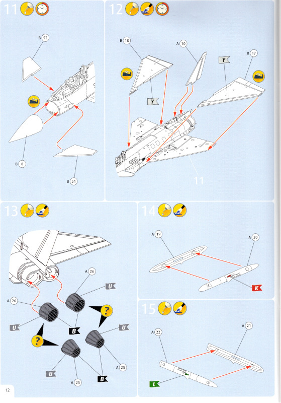 Der MarkeirungsbogenDer Markierungsbogen wurd neu für dieses Set hergestellt. Er ist fast A4 groß und augenscheinlich von sehr guter Qualität. Die Markierungen sind glänzend und dünn gedruckt. Sehr viele Wartungshinweise je Modell warten darauf, verarbeitet zu werden. Der Eurofighter mit der 30+68 konnte bereits mit dem Geschenkset „60 Jahre Luftwaffe" mit Sonderlackierung in 1:72 dekoriert werden. Im vorliegenden Set kann er in seiner Standardlackierung gebaut werden. Der Tornado mit der 43+50 und der Phantom II mit der 38+74 konnten ebenfalls mit dem o.g. Geschenkset markiert werden.