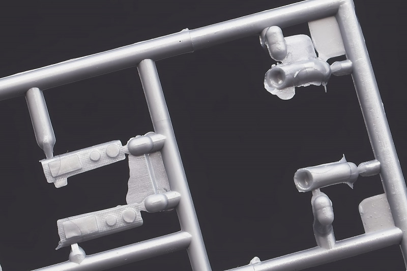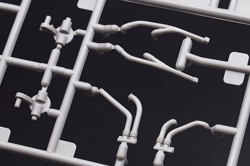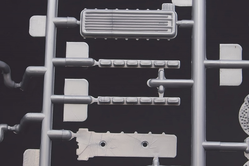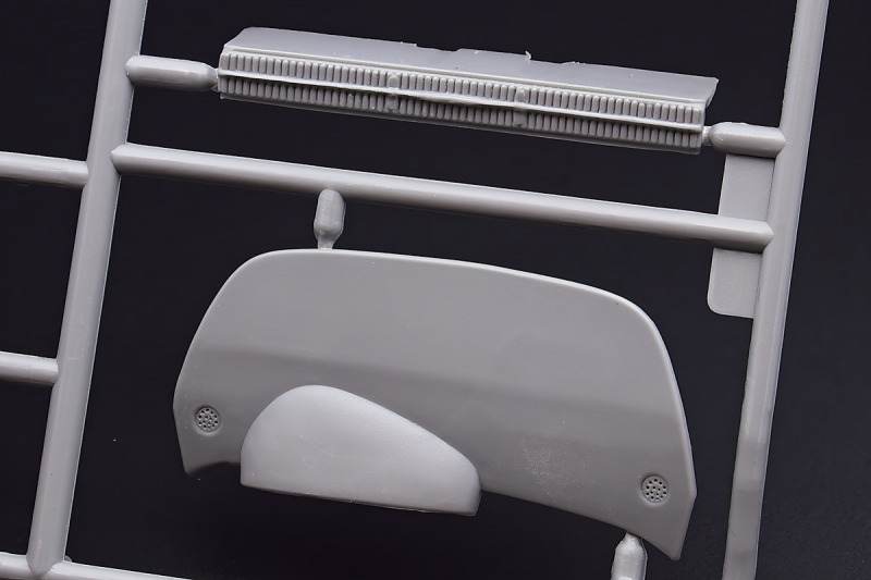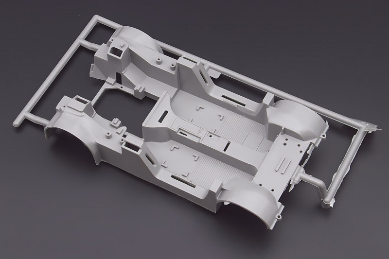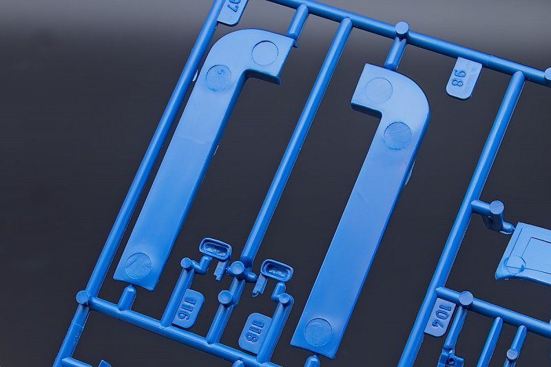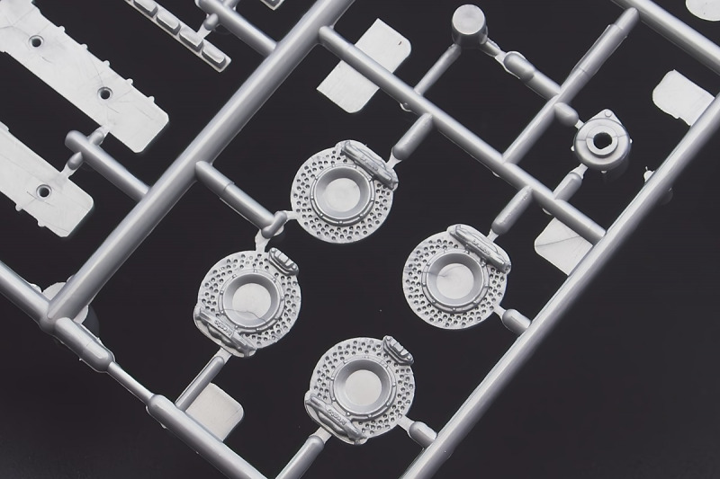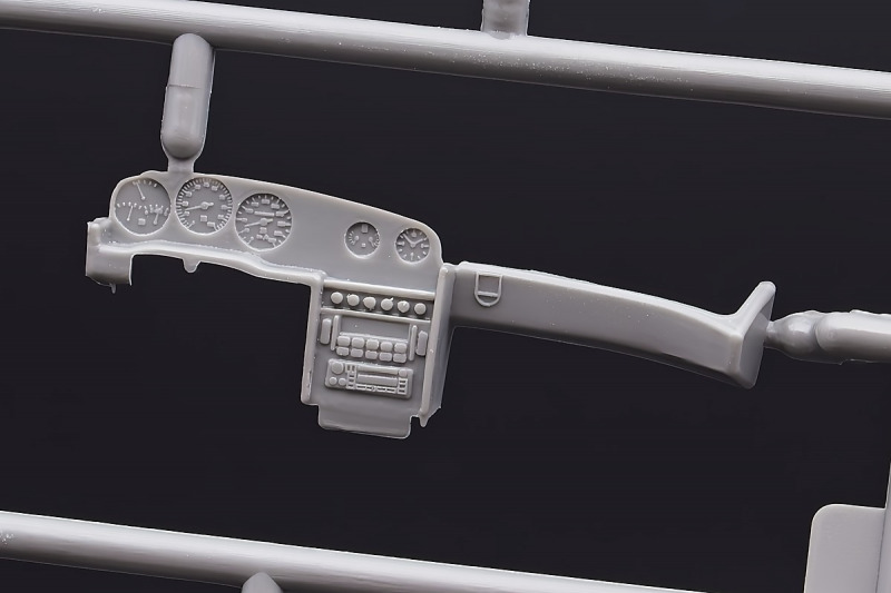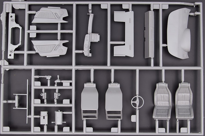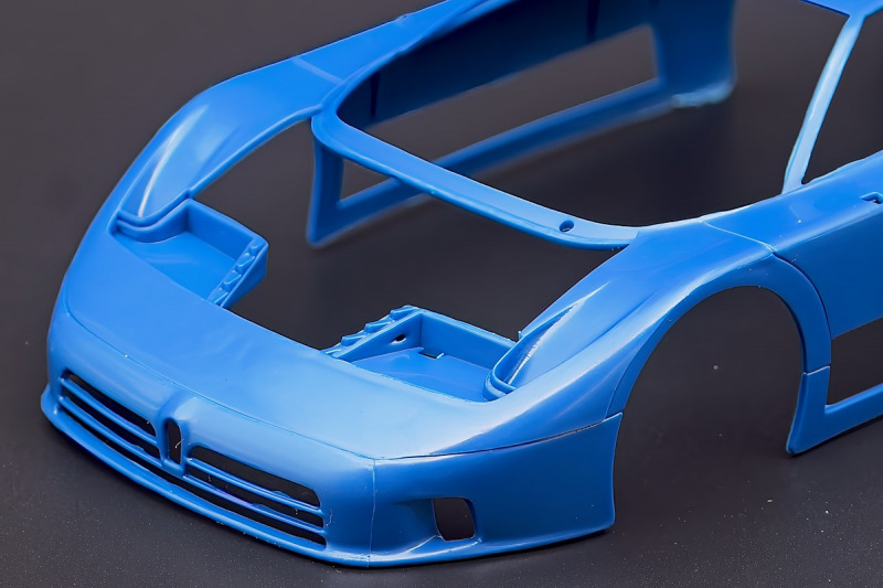 Revell hat sich ganz schön lange Zeit gelassen, den Bausatz des Bugatti EB110 mal wieder neu aufzulegen. "Ups I did it again" ist hier alles andere als zutreffend. Tatsächlich gab es ihn bisher nur einmal und er blieb auch nur wenige Jahre im Programm. Da schrieb am noch eine 19 am Anfang der Jahreszahl, so lange ist das schon her. Zwischenzeitlich hatte er sich zu einem begehrten Sammlerstück gemausert, mit entsprechenden Preisen. Nun kommt er im neuen Schachteldesign daher, mit neuem Decalbogen und aktueller Bauanleitung. An den Bauteilen hat sich erwartungsgemäß nichts geändert. Warum auch, der Bausatz war für damalige Verhältnisse echt top. Die 148 Bauteile sind in in drei Farben gespritzt, grau, blau und silber. Bei der Erstauflage war der Rahmen mit den Felgen noch verchromt, das hat man gottseidank hier bleiben lassen. Die Gussqualität ist so o-la-la, es gibt einiges an Fischhaut, Grate und auch ziemlich große Auswerferpins. Da kann der Bausatz seine 30 Jahre, die er auf dem Buckel hat, nicht ganz verleugnen. Demgegenüber kann der Bausatz mit einigen wirklich hervorragend gemachten Details aufwarten. So sind z.B. die Sitze die besten, die ich bis dato in einem 1:24er Bausatz vorgefunden habe. Man kann das edle Leder von Poltrona Frau quasi förmlich riechen beim Anblick der fein strukturierten Sitze. Auch der Rest vom Innenraum weiß zu überzeugen. Das Armaturenbrett strotzt geradezu vor Details. Das I-Tüpfelchen sind die Wurzelholz-Decals. Das kann Van der Rostens ihre Uschi auch nicht besser! Der aus fast 50(!) Bauteilen bestehende Motorraum verschwindet leider fast vollständig unter der Karosserie. Das gleiche gilt auch für die Achsen. Revell hat sich seinerzeit sehr viel Mühe mit diesen Details gegeben. Wenigstens kann man die recht große Klappe hinten öffnen, so sieht man wenigstens etwas von all der Pracht. Getrübt wird die Freude nur von der ganzen Vorarbeit, die man zum Versäubern der Teile leisten muss. Revell hat auch wieder eine ganze Reihe von Decals beigelegt, mit denen man den Motor dem Original noch ein weiteres Stückchen näher bringen kann. Auch die vordere Klappe kann man offen anbauen, darunter kommen dann z.B. die Hydraulik der Bremsanlage und die Batterie zum Vorschein. Die Reifen sind sehr schön gemacht. Sie haben ein originalgetreues Profil und es gibt erhabene Schriftzüge an den Flanken. Ich habe mal nachgemessen, die Originalreifen - vorne 245/40 R18, hinten 325/30 R18 - sollten umgerechnet für 1:24 einen Außendurchmesser von 27,2 mm haben. Die Bausatzreifen sind ca. 1 mm zu klein im Durchmesser. Die Breite passt in etwa. Die BBS-Felgen weisen stellenweise etwas Fischhaut in den Zwischenräumen auf. Schade, dass man durch die Felgen von der Bremsanlage am fertigen Modell kaum etwas sieht, denn diese ist ganz hervorragend wiedergegeben, einschließlich der gelochten Bremsscheiben. Die Vorderräder können beweglich (also mit Lenkeinschlag) angebaut werden. Wer sauber arbeitet, bekommt auch drehbare Räder hin. Die Klarsichtteile sind eher mäßig. Die große Frontscheibe hat eine ungleichmäßige Materialstärke was zu einer welligen Oberfläche führt. Nicht tragisch, aber das fertige Modell wirkt dadurch etwas ´billiger´. Die kleine, senkrechte Heckscheibe ist eher trüb, als wäre die Form nicht sauber poliert gewesen. Sieht man zwar kaum, weil sie unter der großen Heckklappe verschwindet, ärgerlich ist es aber trotzdem.