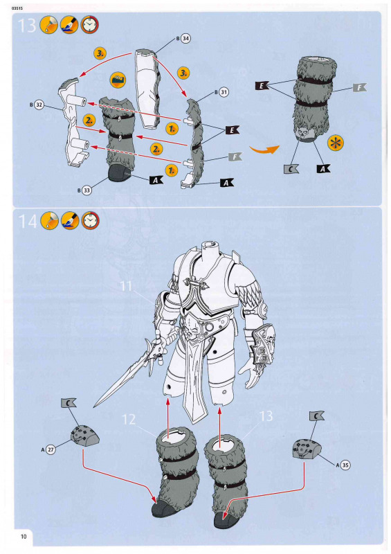 Die Anleitung......ist farbig gedruckt und zeigt in 23 einfachen Schritten, was zu tun ist. Die Bemalung erfolgt dabei jeweils direkt im entsprechenden Bauschritt. Genau hier liegt auch die größte Herausforderung, denn letztlich ist eine gelungene Bemalung das A und O für eine gelungene Figur.