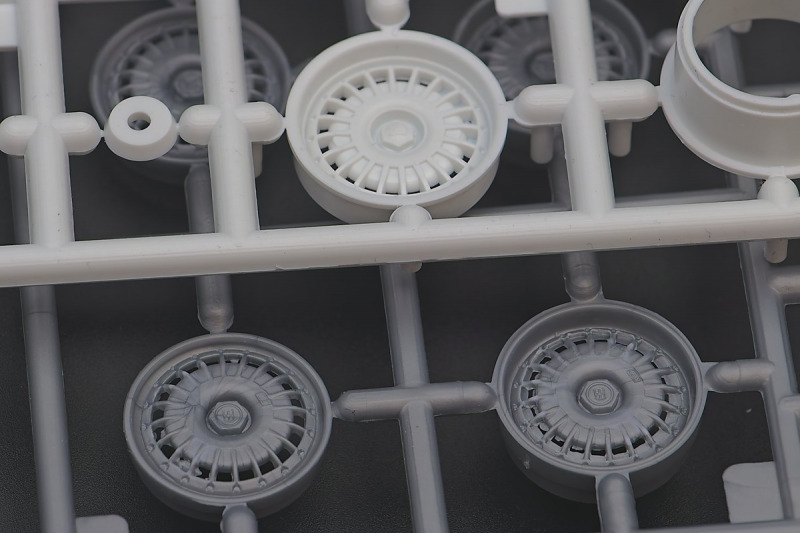 Die Heller Karosserie ist sehr ´labberig´ Räder, Reifen, AchsenDeutliche Unterschiede zwischen den beiden Modellen kann man auch bei den Rädern und Reifen erkennen. Rein optisch machen die Schlappen von Revell die bessere Figur. Sie haben ein schöneres Profil und der Querschnitt der Reifen sieht überzeugender aus. Heller´s Interpretation der Michelin-Pneus haben zwar auch ein Profil, dieses ist aber längst nicht so detailreich wie bei Revell. Punkten kann Heller dagegen beim Durchmesser der Reifen, dieser ist etwas größer als bei Revell. Rechnet man die Originalmaße auf 1:24 um, so erkennt man, dass Heller hier richtig liegt. Bei den Felgen tendiere ich eher zu Heller, auch wenn sie auf den ersten Blick weniger detailliert aussehen. Die Revell-Felgen sind mir insgesamt zu abgerundet, zu weich. Die Originale sind eher kantig mit harten Übergängen. Heller hat das sehr gut getroffen. Dafür hat Revell bei den Bremsscheiben wieder die Nase vorn - gelochte Scheiben und mehr Details an den Sätteln. Ob man am fertigen Modell den Unterschied noch sieht, darf bezweifelt werden. Bei den Radaufhängungen und Achsteilen geben sich beide Modelle nicht viel. Vom Aufbau her und auch bei der Detaillierung ähnlich, besteht der größte Unterschied in der etwas massiveren Ausführung der Bauteile von Revell. Einzig die Radträger sind bei Heller recht plump ausgefallen, die Revell-Teile sehen da schon etwas besser aus. Das meiste von diesen Teilen verschwindet aber in den Tiefen der Radhäuser, so dass man am fertigen Modell kaum etwas davon sieht. Der Unterboden ist bei Heller mehr oder weniger glatt und frei von Details. Revell hat seinem Boden wenigstens ein paar Nieten (oder Schrauben?) spendiert.