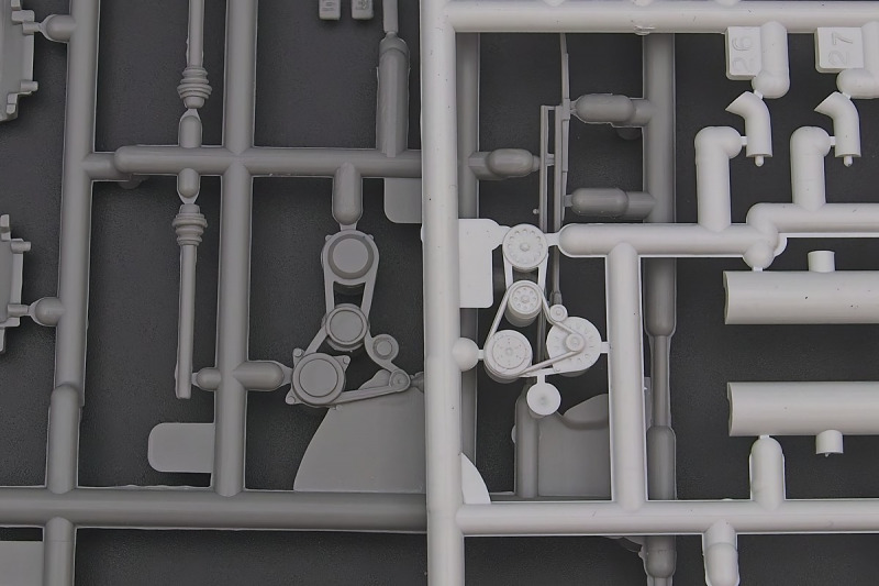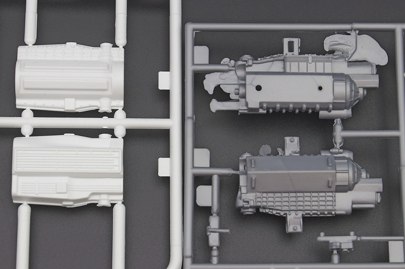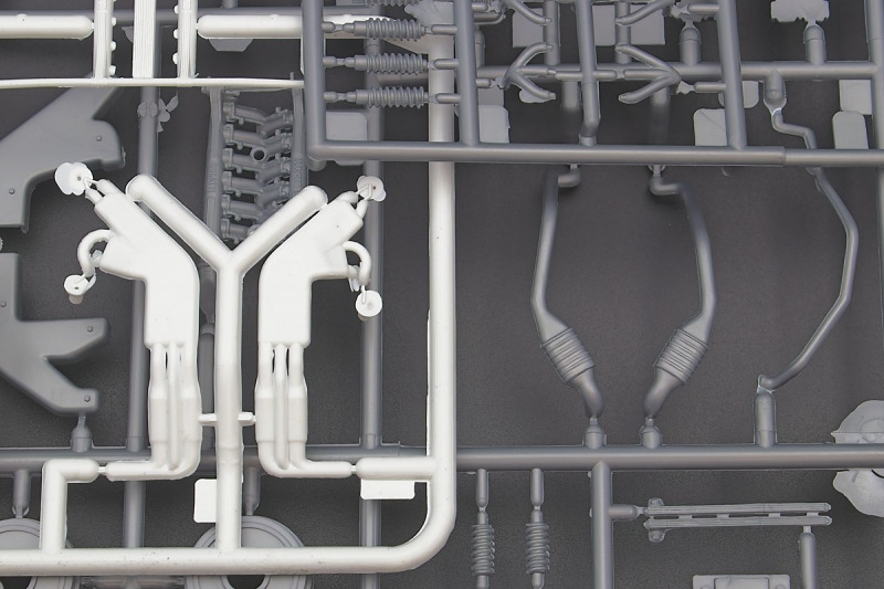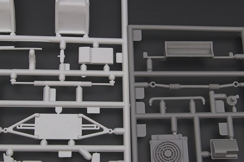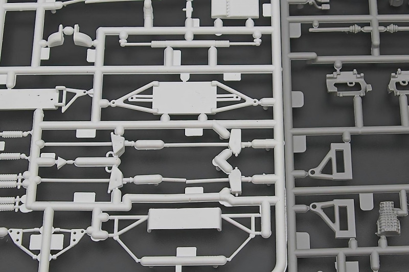 Der MotorBeim Motor schlägt sich Heller in diesem Duell ganz wacker. Zwar besteht deren Motor aus deutlich weniger Bauteilen, was die Detaillierung angeht, liegen die beiden aber nicht so weit auseinander. Man müsste die Motoren schon ausgebaut neben das Modell stellen, um hier einen Vorteil für einen der beiden zu sehen. Beim Blick in die geöffnete Heckklappe dürften beide eine gute Figur machen. Heller hat im Gegensatz zu Revell die einzelnen Komponenten zu weniger Bauteilen zusammengefasst. Der Detaillierung schadet das nicht unbedingt. In jedem Fall kommt es der Montage entgegen, da dürfte man bei Heller sehr viel schneller fertig sein. Auf Decals verzichtet man bei Heller hier gänzlich. Anscheinend legt man da im Gegensatz zu den Flugzeugen bei den Pkw-Bausätzen nicht so viel Wert drauf - schade eigentlich. Vielleicht gibt es ja mal eine Wiederauflage, wo man das ändert.
