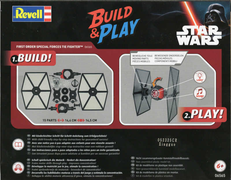 BesprechungDas OrginalDer First Order Special Forces TIE Fighter ist im Grunde das, was passiert, wenn man den klassischen TIE Fighter nimmt und ihn kompromisslos weiterentwickelt. Für mich wirkt er sofort massiver und bedrohlicher als die alten imperialen Jäger, auch wenn die Grundform natürlich sofort wiederzuerkennen ist. Im Gegensatz zu den früheren TIEs bringt diese Variante Schilde, mehr Feuerkraft und sogar einen Heckschützen mit. Man merkt schnell: Dieses Schiff ist nicht mehr als Wegwerfjäger gedacht, sondern als ernstzunehmende Kampfmaschine. Wer die Sequel-Trilogie gesehen hat, erinnert sich an seine Auftritte - unter anderem im Umfeld von Kylo Ren. Der BausatzRevell verfolgt bei diesem Set konsequent den Build-&-Play-Ansatz. Für mich heißt das ganz praktisch: Kein Kleber, keine Farben, kein langes Vorbereiten. Die Teile werden zusammengesteckt und schon nach kurzer Zeit steht das fertige Modell vor einem. Der Bausatz richtet sich klar an Kinder, Einsteiger und Fans, die nicht stundenlang bauen wollen, sondern schnell ein sichtbares Ergebnis haben möchten. Ich finde gerade die Light- und Soundeffekte hier gelungen, weil sie dem TIE Fighter deutlich mehr Präsenz verleihen. Laut Revell liegt der Maßstab bei 1:51, die Teilezahl ist bewusst niedrig gehalten und die Altersempfehlung beginnt bei 6 Jahren. Nach dem Zusammenbau kann das Modell auf dem beiliegenden Displayständer präsentiert werden. Gerade die integrierten Effekte ziehen dabei schnell die Aufmerksamkeit auf sich und machen das Modell auch für jüngere Fans besonders spannend.