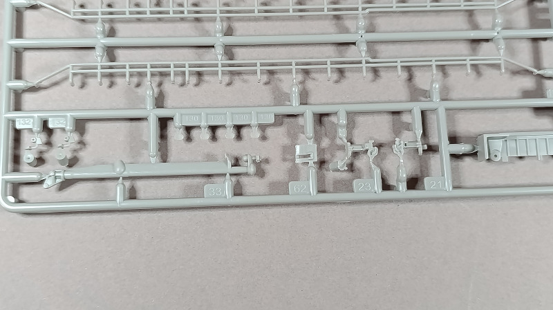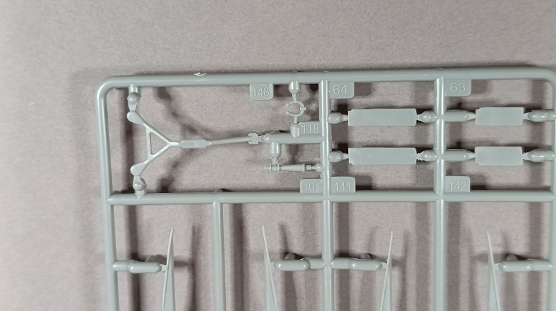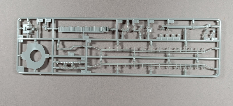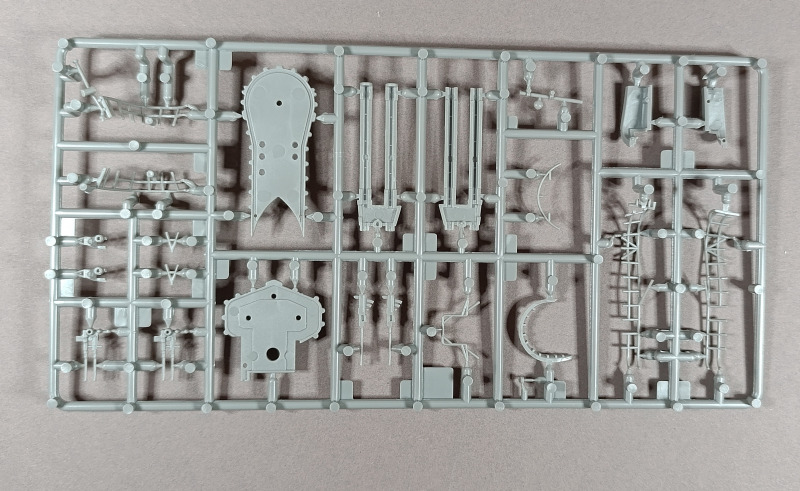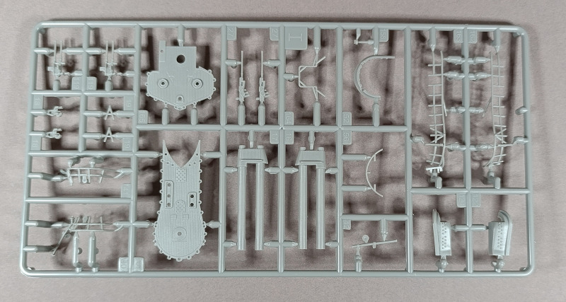 zum Bausatz:Endlich wurden die Rufe erhört und ein ansprechender Bausatz des Typ IX erschien bei Revell. Aktuell ist dieser auch der einzige Bausatz im Maßstab 1:144 zu den sogenannten „Amerika-Booten“. Das ist durchaus verwunderlich, denn mit insgesamt 243 gebauten Einheiten waren die Typ-IX-Boote nach dem Typ VII die zweitmeistgebauten U-Boote der Kriegsmarine und zugleich deren größte in Serie gefertigte Hochsee-U-Boote. Konkret ermöglicht der Bausatz allerdings lediglich den Bau der U-190, die zur Unterklasse C/40 gehörte. Sicherlich werden künftig weitere Versionen folgen, aktuell ist jedoch noch nichts angekündigt. Auch die Konkurrenz, etwa Trumpeter, scheint derzeit keine Ambitionen zu haben, einen eigenen Bausatz dieser U-Boot-Klasse in 1:144 aufzulegen. Als Besonderheit stellt Revell hier ein Boot mit sogenannten Schnelltauchbacken dar, was dem Modell eine markante Optik verleiht. Der längliche Karton ist als Seitenöffner ausgeführt. Darin befinden sich die sieben Gussrahmen sicher in Folie verpackt, während die beiden Rumpfhälften sowie die zweiteiligen Decksegmente separat beiliegen. Das Cover zeigt eine Gefechtsszene, in der das U-Boot gerade auftaucht, vermutlich eine fiktive Darstellung, denn wer sich mit der vergleichsweise ereignisarmen Geschichte der U-190 beschäftigt, stellt schnell fest, dass lediglich zwei gesicherte Versenkungserfolge verzeichnet sind. Wie nicht anders zu erwarten, ist der Guss sauber ausgeführt: Kaum Formtrennnähte, kein Flash, genau das darf man von einem New Tool aus dem Hause Revell auch erwarten.