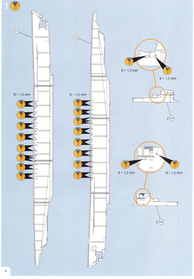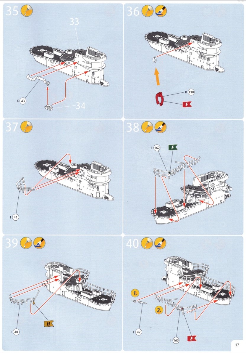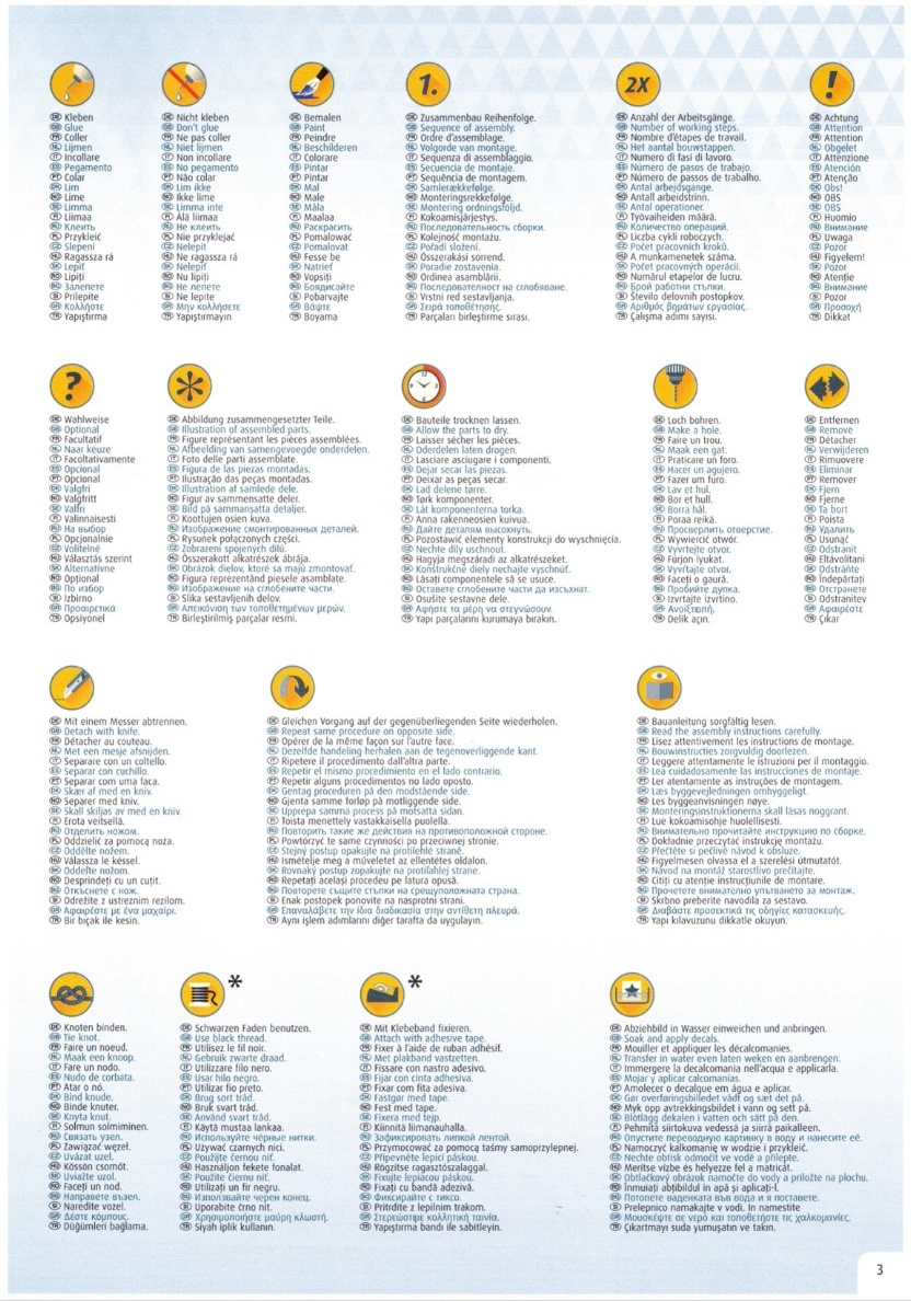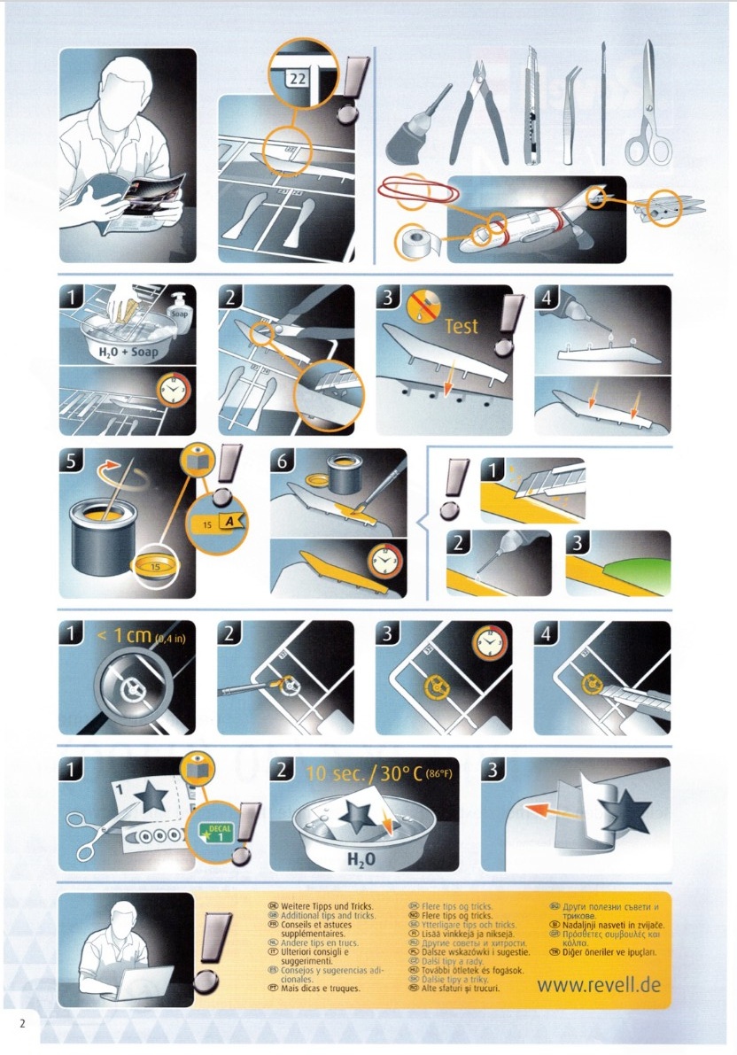 Anleitung:Mit der klassischen Revell-Anleitung gibt es im Grunde keine Probleme. Insgesamt sind 54 Bauschritte notwendig, bis ein fertiges U-Boot auf dem Tisch steht. Bei der Bemalung empfiehlt sich jedoch eine eigene, vertiefte Recherche, um ein möglichst stimmiges und vorbildgerechtes Ergebnis zu erzielen.