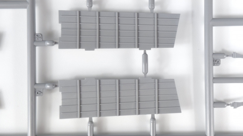Aufbauten, Brücke und MastDer komplexe Brückenaufbau besteht aus insgesamt sieben Hauptkomponenten. Diese sind teilweise mit komplexen Werkzeugtechnik umgesetzt. So besteht z.B. das Hauptbauteil der Brücke aus einem einzigen Spritzgussteil. Um dies in einem Spritzgusswerkzeug umzusetzen, sind verfahrbare Schieber im Werkzeug erforderlich, um die Bauteile nach dem Spritzgussvorgang entformen zu können. Bei dem Brückenbauteil sind es wenigstens sechs Schieber die in der Horizontalachse verfahren müssen. Das erfordert eine absolut perfekte Werkzeugherstellung, um sicher zu stellen, dass die Schiebertrennungen mit minimalster Toleranz gefertigt sind. An dem Bauteil ist keum Grat oder Formtrennversatz zu sehnen, was bedeutet, dass der Hersteller über einen hervorragenden Werkzeugbau verfügt. Im Trennbereich der Schieber ist lediglich in einer Detailaufnahme der vorderen Brückenstruktur ein geringer Formtrennversatz zu sehen - siehe Datailfoto. Wie die Brücke, so sind auch die weiteren komplexen Bauteile in einwandfreier Qualität hergestellt und verfügen bereits über diverse feine Details. Zur Zentrierung der Bauteile finden sich auch hier stabile Zapfen und Langlöcher zur Zentrierung. Das alles erinnert ein wenig an einen Steckbausatz, ich bin aber davon überzeugt, dass sich mit der Methode die Bauteile perfekt fixieren und verkleben lassen werden. Die Montage diverser kleiner Unterbaugruppen, sowie der vielen Kleinteile erfordert insgesamt sieben Montagschritte zuzüglich diverser Untermontagegruppen. Neben Schotten, Fittings, Schlauchhalterungen, Radargeräten, Rettungsinseln, Podesten, Antennen sind zusätzlich einige der enthaltenen Fotogeätzten Bauteile anzubringen. Sämtliche Kleinteile sind in ebenso guter Qualität und sehr fein detailliert wiedergegeben. Als weitere Komponente findet sich der Aufbau um den vorderen Rauchgasabzug, sowie der komplexe Dreibeinmast. Der Aufbau für den Rauchabzug besteht wiederum aus einem Spritzgussteil und diversen anzubringenden Kleinteilen, sowie einer fotogeätzten Steigleiter. Die Struktur des komplexen Mast ist aus mehreren Einzelteilen zusammen zu setzen. Die Teilung der quadratischen Hauptstrebe in zwei Hälften ist gut gelöst. Die Stützstreben bestehen aus einem einzigen Bauteil. Bei dem Zusammenbau der Maststruktur sollte unbedingt die richtige Position der beiden Stützstreben direkt am Brückenaufbau geprüft werden, da der Mast erst nach Komplettierung am Brückenaufbau anzubringen ist. Die Rahen sind sehr fein und fragil und daher mit Vorsicht vom Gussast zu trennen und zu montieren.