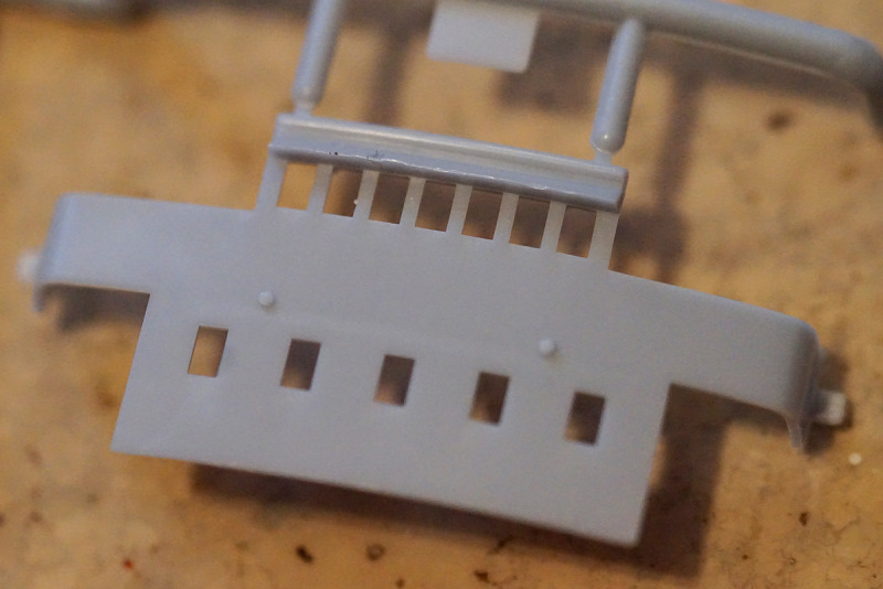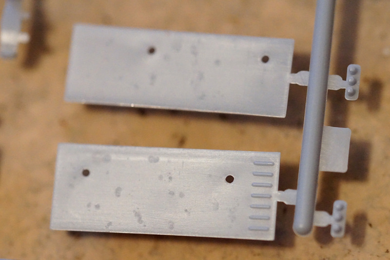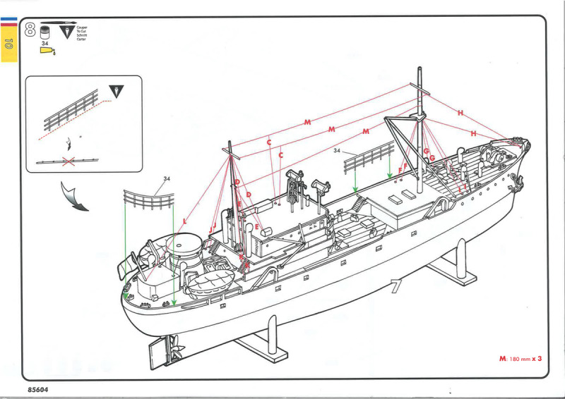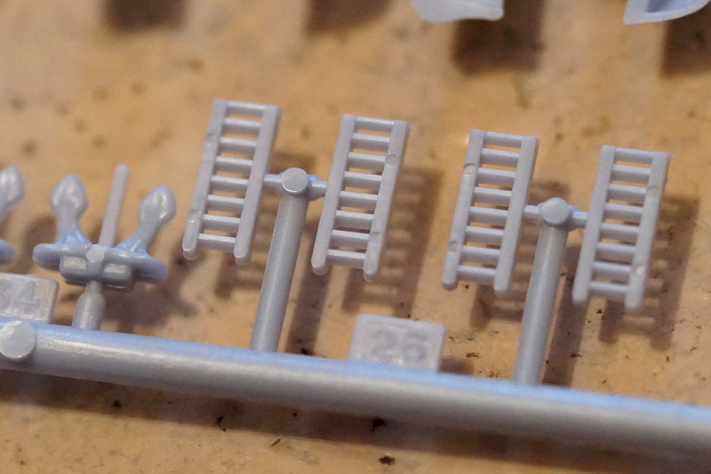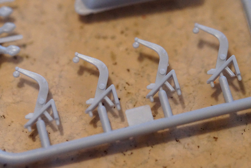 Auch hier ist die bei Heller-Schiffsbausätzen unvermeidliche Standard-Reling zu finden, die über alle Maßstäbe gleich ist. Trotz der nach wie vor seltsamen Ausführung ist die Gussqualität des hier in schwarzen Kunststoff produzierten Astes gut. Die Verwendung von Alternativen, beispielsweise in Form von Ätzteilen, sollte aber schon erwogen werden, da die Bauanleitung weder hier noch bei Bausätzen in anderen Maßstäben schlüssig angibt, wie hoch die Reling denn eigentlich werden soll – für 1:200 ist sie auf jeden Fall zu niedrig und für alle Maßstäbe zu klobig.