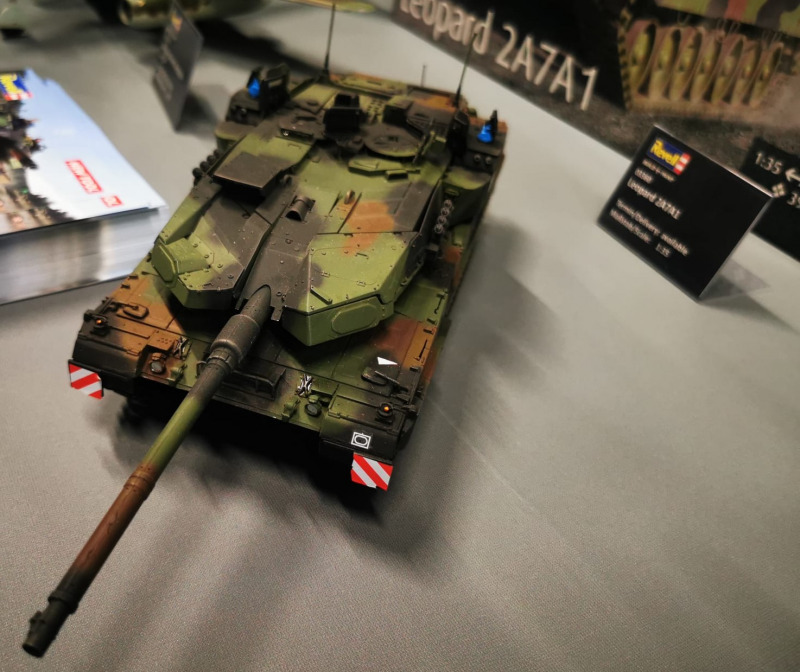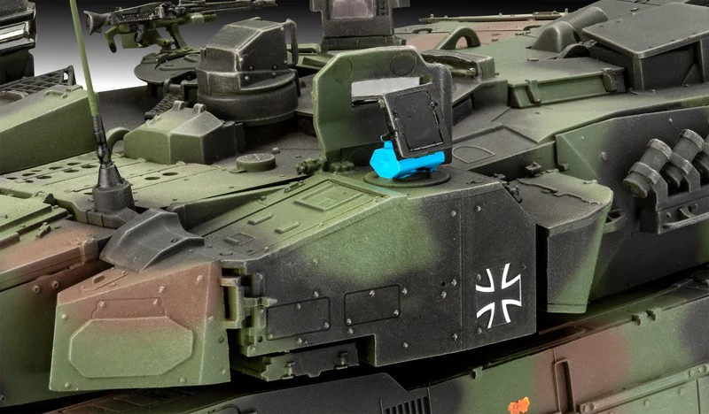 Ganz aktuellDer Leopard 2A7A1 repräsentiert die neueste Evolution der erfolgreichen Leopard-Serie. Die Bundeswehr investiert mit einer Bestellung von 17 Einheiten über 525,6 Millionen Euro in diese Modernisierung ihrer Panzerflotte. Das aus Israel stammende Trophy Active Protection System (APS), ein abstandsaktives Schutzsystem, erfasst anfliegende Flugkörper mittels Radar und vernichtet diese in Bruchteilen von Sekunden mit den zwei Werfereinheiten auf dem Turm des Panzers, bevor sie die Panzerung erreichen, was ihn zu einem der bestgeschützten Kampfpanzer weltweit macht. Weil keine zusätzliche Reaktivpanzerung erforderlich ist, bleibt das Kampfgewicht des Panzers moderat und seine Beweglichkeit hoch. Der Leopard 2 A7A1 ist quasi eine Kombination aus dem Leo 2A6M A3 und 2A7, bei dem zusätzlich das Trophy APS angebracht wird. Außerdem werden das 20kW Hilfsaggregat in der hinteren, rechten Rumpfseite und die Turmkühlanlage des 2A7 verbaut. Die Weiterentwicklung zum Leopard 2A8 ist bereits mit 105 Einheiten fest eingeplant. (Quelle: revell.de, bundeswehr.de und Tankograd)