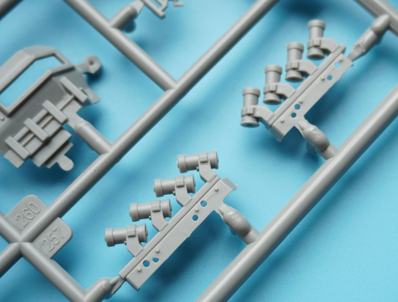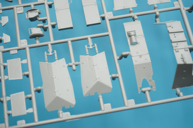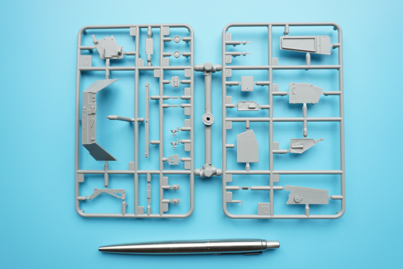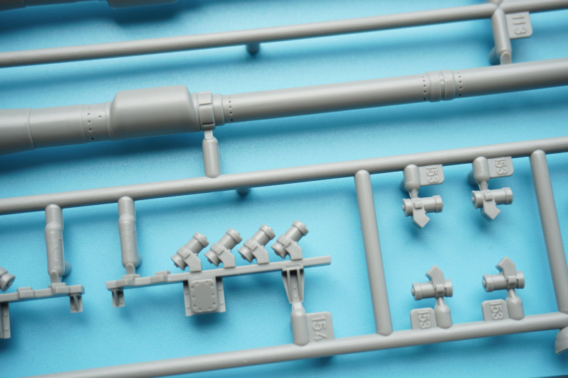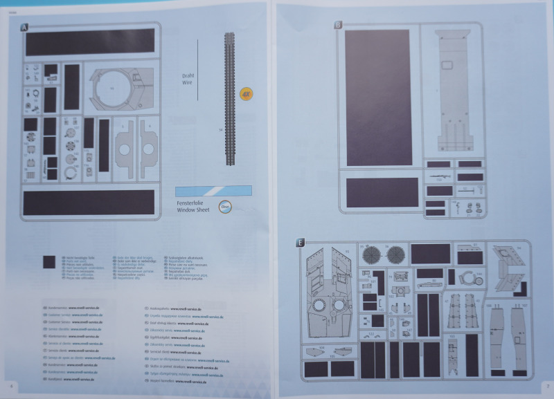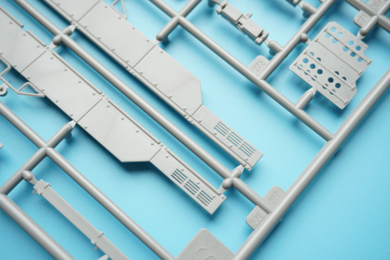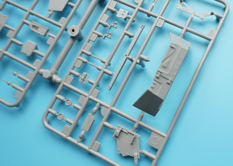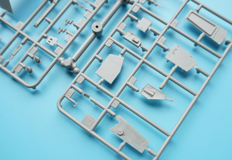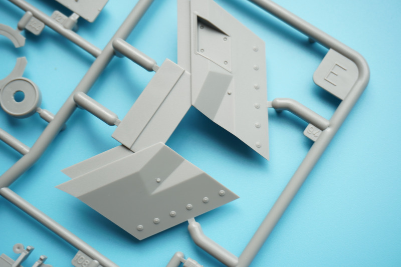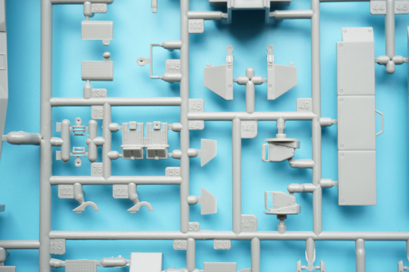 Es verbleiben zahlreiche Bauteile der früheren Modelltypen für die Ersatzteilkiste, unter anderem die kompletten Rumpfober- und -seitenteile der Varianten A4 bis A6 (Spritzlinge A und B).