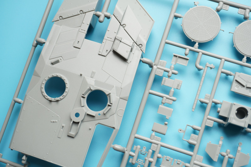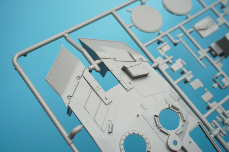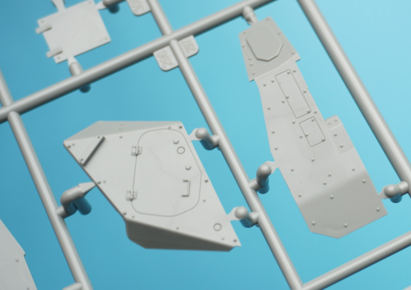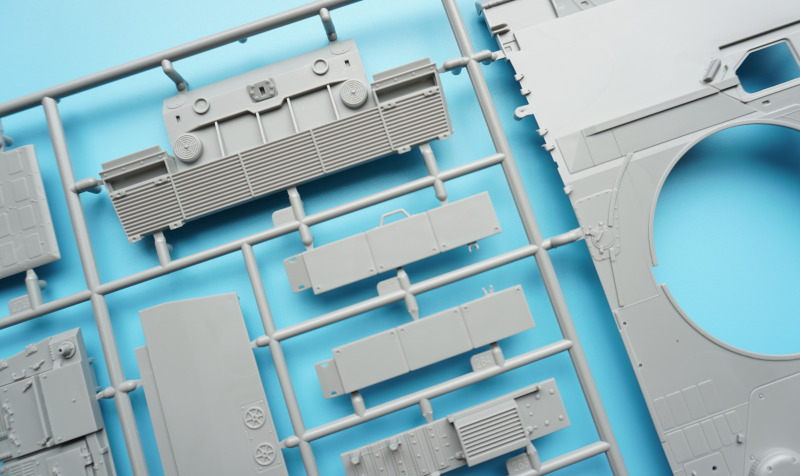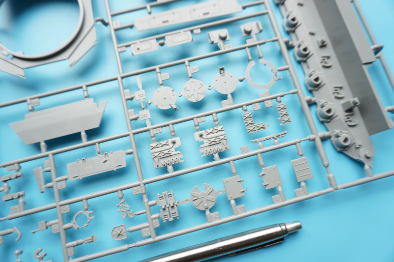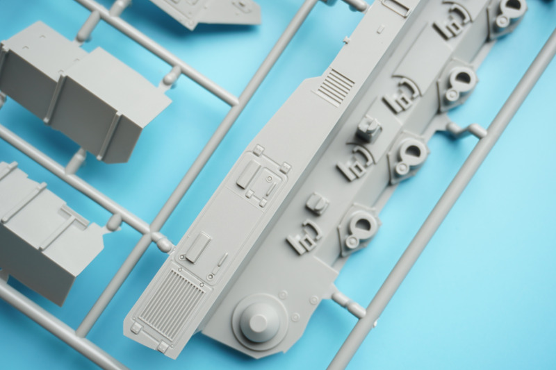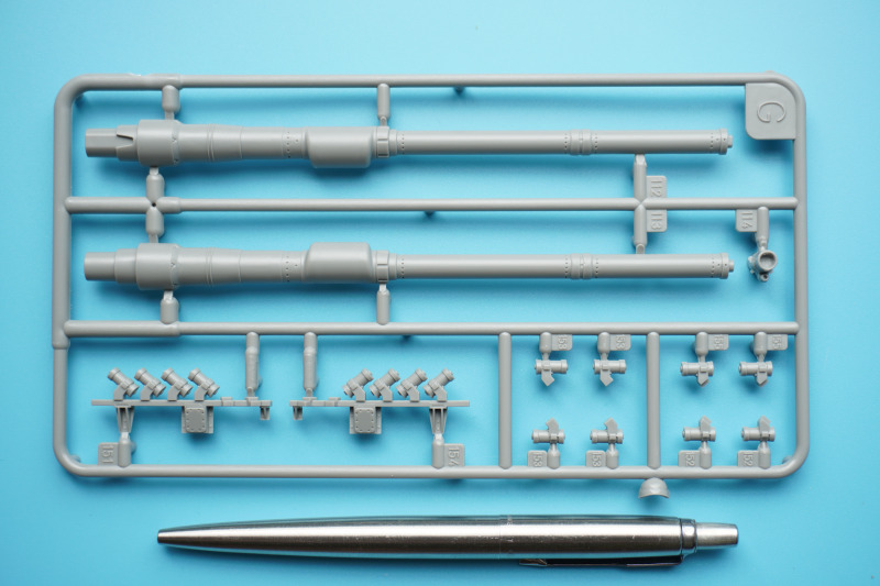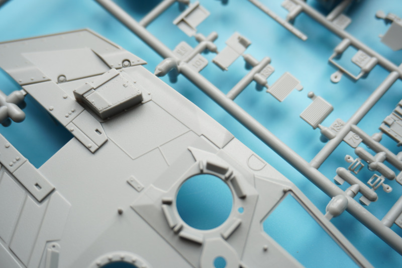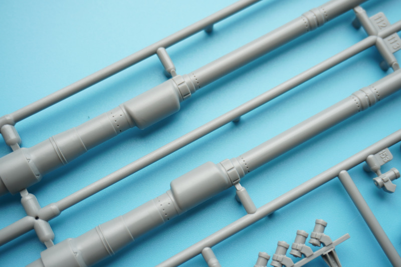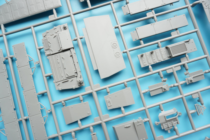 Es verbleiben zahlreiche Bauteile der früheren Modelltypen für die Ersatzteilkiste, unter anderem die kompletten Rumpfober- und -seitenteile der Varianten A4 bis A6 (Spritzlinge A und B).