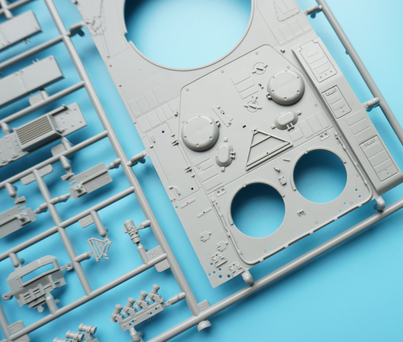Eine Menge Plastik in der BoxDer Leopard 2 wurde von Revell im Maßstab 1:35 immer wieder mal bis zum Jahr 2004 als Wiederauflage des Italeri-Modells angeboten. Erstmals im Jahr 2012 brachte Revell einen "eigenen" Leo in der Variante 2A6/ A6M als Bausatzneuheit im Maßstab 1:35 heraus. Die Bausatzreihe wurde zwischenzeitlich, quasi parallel zur technischen Entwicklung des Originals, immer weiter modifiziert, wobei Revell zunächst die früheren Typen A4 und A5 in das firmeneigene Modellprogramm aufnahm. An dieser Stelle sei auf die aussgekräftige Modellbesprechung bei MV aus dem Jahr 2015 von Diethelm Berlage verwiesen, die einen guten Überblick über die Modellreihe gibt, und auch die Vorteile des Kits im Vergleich zu anderen Herstellern sehr anschaulich verdeutlicht. Der vorliegende Kit basiert auf dem von Revell erstmals 2024 als Leopard 2 A6M+ veröffentlichten Modell. Dessen Bauteile werden teilweise verwendet, um die vorliegende Variante A7A1 zu erstellen: die kompletten Lauf- und Antriebsrollen und Panzerketten, Kanonenrohr, Turmober-, -seiten- und -unterteile, Turmluken, Wannenunterseite, Motorlüftergitter, und einige Abdeckungen / Panzerschutzelemente. Neu hinzukommen die Spritzlinge