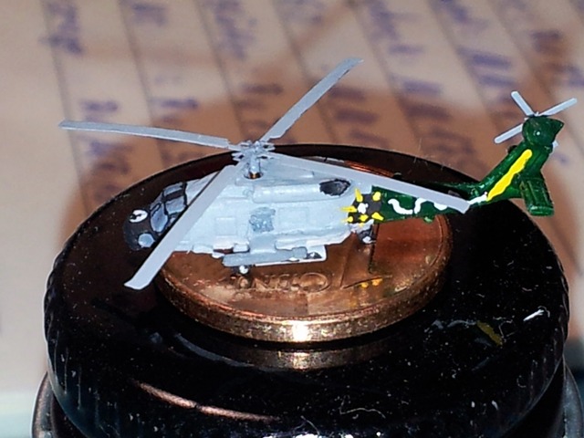 Weil es natürlich kaum eine große Herausforderung ist, solch einen Hubschrauber in 1:72 zu bauen, habe ich mich ein wenig später daran gemacht das Ganze nochmal in 1:700 zu verwirklichen! Grundlage hierfür bildete das "JMSDF Aircraft Set" der Firma Pitroad, welches die japanische Version des Hubschraubers, den SH60K, in sechsfacher Ausführung enthält. Für den Umbau auf die Navy Version müssen lediglich das Radom unter dem Bauch und ein paar Antennen abgetrennt werden. Die Sets von Pitroad sind qualitativ so ziemlich das Beste, was ich bisher an Modellen im Maßstab 1:700 gesehen habe. Gerade für den Schiffs- oder Dioramenbauer sind die Mini-Bausätze sehr zu empfehlen. Aus dem Rest der Helis habe ich mir dann verschiedene Navy Versionen gebaut, die hier zu einem späteren Zeitpunkt noch vorgestellt werden. Meinem 1:700er SH-60 habe ich dann noch fotogeätzte Rotorblätter spendiert. Weitere Bilder