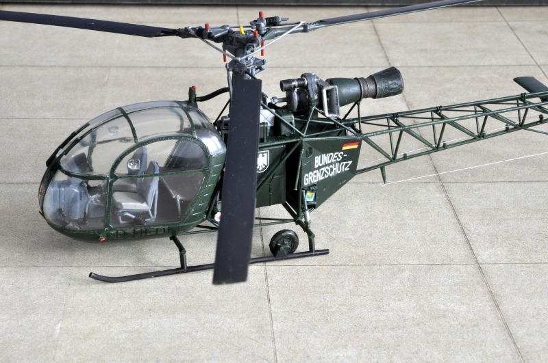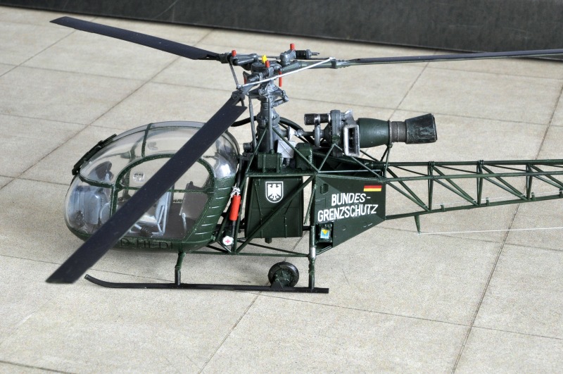 Für einen Bekannten, der die Maschine beim Bundesgrenzschutz geflogen hatte, baute ich das hier gezeigte Modell. Es ist im Maßstab 1:32, ein Revell Bausatz aus den 90ern. Ich muss sagen, dass er im Gegensatz zu manch anderen - heutigen Modellen - außerordentlich passgenau ist, der Zusammenbau erfolgt recht problemlos. Ich hatte im Vorfeld etwas Bedenken wegen des Strebenauslegers und der vollverglasten Kabine gehabt, es ging aber besser, als ich dachte.