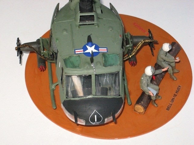 Zum Modell:Ich habe diesen Kit von meinem Sohn Timo zum Geburtstag bekommen. Es ist mein erster Hubschrauber den ich bis jetzt gebaut habe. Gebaut wurde das Modell oob, eine ausgediente CD-Rom dient als Diorama sowie ein Stück Holz als Baumstamm und die Cola Dosen wurden modelliert. Da es sich bei diesem Modell um einen schon älteren Bausatz handelt, ließ die Passgenauigkeit zu wünschen übrig. Bemalt wurde die Huey mit Revell-Farben und ausschließlich mit dem Pinsel. Nun wünsche ich viel Spaß mit den Bildern.
