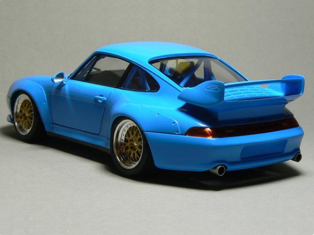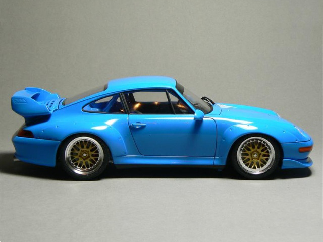 Lackiert wurde das Modell in der original Porsche-Farbe „Riviera blue" von Zero Paints. Im Innenraum wurden die Gurtdecals durch Ätzteile von Scale Production ersetzt.
