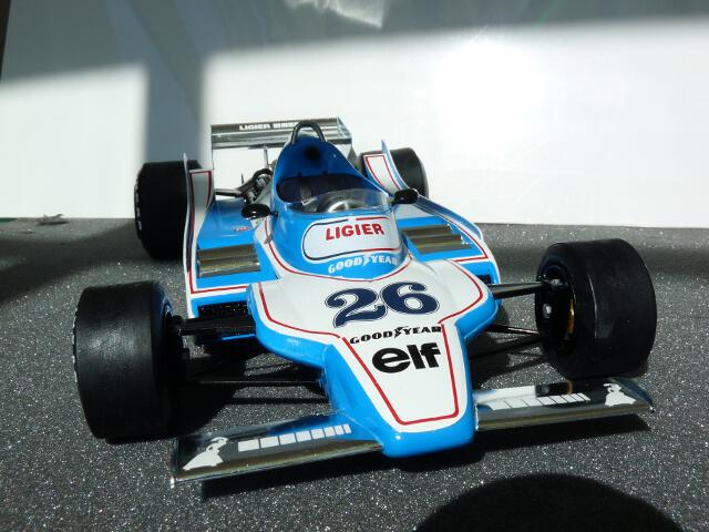 Zum Modell:Der LIGIER-GITANES JS 11 von Heller im Maßstab 1:12 - von wann? Keine Ahnung, auf jeden Fall uralt. Das Modell habe ich vor Jahren ersteigert, ist heute nicht mehr im Angebot und wenn, dann für richtig großes Geld. Der Hellerbausatz ist recht einfach gehalten, besonders die Darstellung des Motors. Kein Vergleich zu gleichaltrigen Tamiyabausätzen. Viele Auswurfstempel und Gießgrade sind zu entfernen. Dafür sind die Chromteile exzellent. Ärgerlich auch die Decals - die Zigarettenmarke des Hauptsponsors von Ligier GITANES ist auf dem Decalbogen nicht zu finden. Was wäre ein Williams ohne CAMEL oder ROTHMANS, was wäre ein Ferrari oder Mc Laren ohne MARLBORO. Ein Graus für jeden Modellbauer. Bei diversen Zubehörhändlern gibt es ja verschiedene Decalbögen für die oben angesprochene Zigarettenreklame zu kaufen, aber nicht für GITANES.