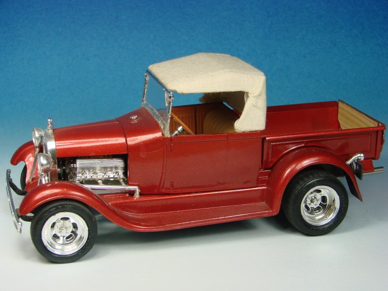 Seit heute steht der 1929 Ford Model A Pickup von Monogram, lackiert mit Indianarot-Metallic (Audi) und dem beigen Stoffdach voller Stolz ganz vorne in der Glasvitrine und freut sich, dass die lange Zeit in einem dunklen einsamen Karton der Vergangenheit angehört.