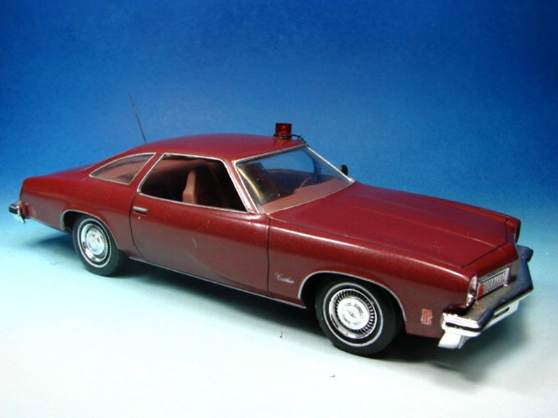 Als Umbauprojekt hatte ich damals vor, den 1975 Cutlass in einen 1977 Cutlass 442 zu konvertieren. Dazu wäre eine komplett neue Front nötig gewesen, die, so dachte ich mir, irgendwann mal jemand als Resinabguß vom Diecast-Modell des Franklin Mint 1977 #43 STP Richard Petty Cutlass herausbringen würde, was leider nie geschah. Dann hätte man die kompletten Seitenteile des Modells verschleifen und mit Green Putty Spachtel neu aufbauen müssen, da die geschwungene Linienführung des 75er Modells ganz anders war als beim 1977er Cutlass. Mit dem Innenleben eines MPC Chevrolet Chevelle Malibu, dem Ausfräsen der Radhäuser, neuen Reifen und scratchgebautem Rohrrahmen wären noch weitere Arbeiten angefallen.