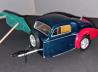 Das Modell ist von Heller, durch einen glücklichen Zufall bekam ich zwei Bausätze zum Preis von einem, wobei ein Bausatz schon begonnen war, aber sehr verhunzt wurde. So ergab sich die Idee, einen Anhänger daraus zu bauen. Der Kofferraum wurde geöffnet, anstelle der Motorhaube wurde die Zugdeichsel angebaut. Die Karosserien zeigen eine Zweifarben-Lackierung. Ich hoffe, das Modell gefällt euch, es ist halt mal was anderes...