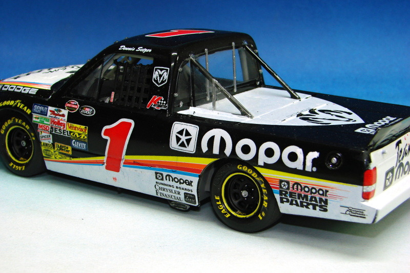 Revell brachte den Dodge RAM aus der NASCAR Rennserie nur in zwei Ausführungen heraus. Der Bausatz No. 85-2341 für den hier vorgestellten #1 „Mopar“, gefahren von Dennis Setzer und den 85-2998 des #43 „Mattel Hot Wheels“ von Carlos Contreras, hier bei Modellversium zu sehen.