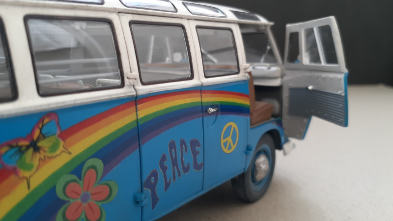 In den 1960er und 1970er Jahren wurde der T1 Samba Bus zum kulturellen Symbol der Flower-Power-Bewegung. Flower Power entstand aus den damaligen Antikriegs- und Gegenkulturbewegungen und stand für Frieden, Liebe und Harmonie, oft ausgedrückt durch lebendige, psychedelische Kunst, Musik und Proteste. Der VW Samba Bus wurde zur rollenden Leinwand für diesen Geist, mit farbenfrohen Designs mit Blumen, Friedenszeichen und auffälligen Mustern. Seine Erschwinglichkeit und Anpassungsfähigkeit machten ihn zu einem Favoriten bei jungen Abenteurern, Familien und Gemeinschaftsgruppen und verkörperte Freiheit und Nonkonformität. Der Bus wurde besonders bei Veranstaltungen wie dem Woodstock-Musikfestival zu einer Ikone und festigte seinen Platz als Symbol des Hippie-Lebensstils.