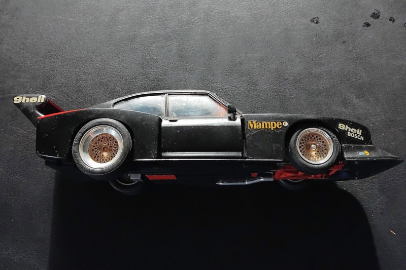 Hier möchte ich meinen vor 44 Jahren gebauten Ford Capri Zakspeed vorstellen. Zakspeed war damals ein deutscher Rennstall. Gebaut OOB, lackiert mit der Spraydose aus dem Baumarkt (schwarz glänzend), den Rest mit dem Pinsel und Humbrol-Farben. Die Passform war gut, genauso die Decals. Ein "Weekend Bausatz", dessen Bau wie immer Spaß gemacht hat.