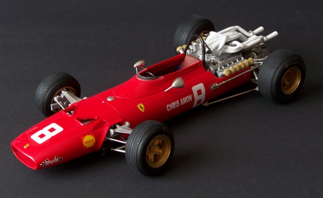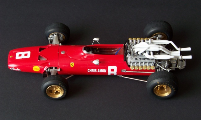 Die Saison 1968 begann am 1. Januar in Kyalami, wo Ferrari mit Amon, Jacky Ickx und Andrea de Adamich drei Fahrer an den Start schickte. Das Modell stellt den Wagen von Amon in Kyalami dar - das letzte Rennen von Jim Clark, das letzte Rennen bevor die Wagen in Sponsorfarben lackiert wurden, und das vorletzte Rennen bevor zum ersten mal Flügel an die Formel 1 Wagen montiert wurden.