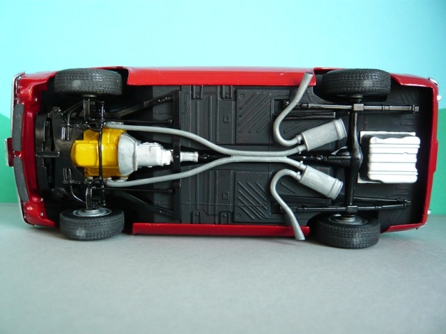 Die Karosserie habe ich probiert, mit dem Pinsel zu bemalen. Dies kam eigentlich recht gut, nur habe ich am Schluss einen Klarlack-Spray angebracht, bevor die Farbe ganz ausgetrocknet war. Dadurch haben sich leider kleine Risse gebildet. Schade, aber so lerne ich halt dazu.