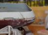 Bau des ModellsModellbaufreund Dirk hatte die Spanten gezeichnet und mit seiner CNC Fräse aus Sperrholz gefräst. So baute ich bequem das Spantengerüst. Es wurde mit 1mm Polystyrolstreifen beplankt, mehrfach gespachtelt und geschliffen und lackiert. Danach entfernte ich alle Spanten aus dem Inneren und erhielt damit einen leichten leeren Rumpf. Das Deck entstand ebenfalls auf Spanten, damit versprach ich mir, Balkenbucht als auch Decksprung vorbildgerecht darzustellen. Insbesondere beim herausnehmbaren Decksteil achtern erschien mir das sonst problematisch. Für Deckshaus und Brücke kaufte ich einen Frästeilsatz, Reling und Treppen dagegen lötete ich aus Messing. Ebenso aus Messing entstand der Mast.