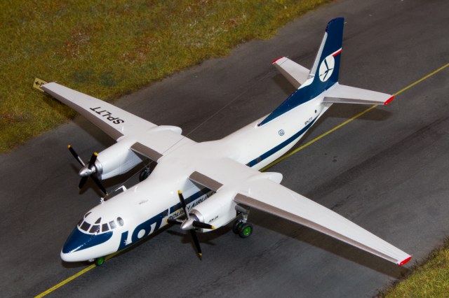 Die Antonow An-24 gehört zu den typischen Flugzeugen, welche ab den 1950ern vom OKB Antonow produziert wurden. Robust, unverwüstlich und in der Lage, von nicht befestigten Pisten aus zu operieren. Sie wurde als Ersatz für die IL-14 gebaut. Fast 90% aller gebauten An-24 sind noch im Einsatz auf der ganzen Welt. Aus dem 44 sitzigen Kurzstreckenflugzeug ging die Transportervariante An-26 hervor. In China wird die An-24 in modifizierter Form als Xian Yunshuji Y-7 weiter produziert. Das letzte Flugzeug russischer Produktion verließ 1978 die Werkshallen. Die polnische Fluggesellschaft Lot setzte die An-24 von 1966 bis ins Jahr 1991 ein und betrieb 14 Exemplare.