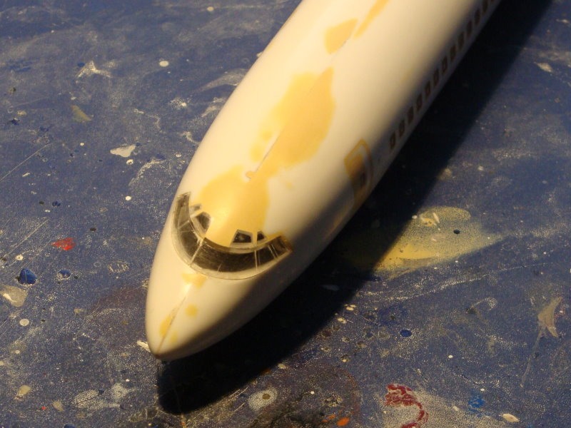 Für das Mitteltriebwerk wurde das Rumpfende stark verjüngt und als Abschluß ein passender Ring eingesetzt. Bei den Außentriebwerken wurde das Ende abgeschnitten und die Klappen für die Schubumkehr entstanden im Eigenbau.