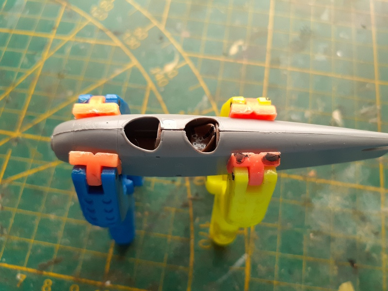 Mein Modell:Der KP Bausatz (Nr. KPM0077) versprach aufgrund der geringen Teilezahl eine zügige Ferigstellung. Doch war der Bau sehr viel komplizierter als erwartet. Nach dem Einbau des Cockpits passten die Rupfhälften nicht zusammen und der Spalt musste gepachtelt werden. Ebenso ging es mit dem vorderen Cockpit. Dieses sollte mittels einer gebogenen Scheibe verschlossen werden, welche allerdings nicht passte. Also weiter Spachteln und Schleifen. Auch die Bauanleitung ist nicht ganz eindeutig. Zwischen dem Rumpf und den Flügeln muss ein kleiner Spalt bleiben, den ich fast übersehen hätte. Das Fahrwerk anzubringen war ebenfalls etwas "kniffelig". Abgesehen von den aufgezählten Dingen, bei denen der Modellbauer obacht haben sollte, verlief der weitere Bau recht zügig. Das Modell sollte unbedingt vor dem Aufbringen der Decals mit Glanzlack überzogen werden, denn die große Flugzeugkennung hat eben einen großen Trägerfilm.