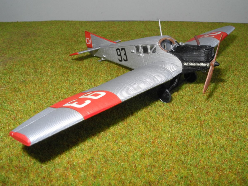 Mein ModellEigentlich wollte ich diesen hier gezeigten Bausatz gar nicht verbauen, dann versuchte ich eine ÖLAG-Maschine daraus zu machen, scheiterte aber an der weißen Schrift für die Tragflächenunterseiten. Die Lufthansa-Optionen des Bausatzes kamen wegen der verdruckten weißen Taufnamen auch nicht in Frage - also Ad Astra! Nur hatten die Bausatz-Decals neben dem dicken Material und dem vergilbten Weiß noch einen anderen Mangel: Der Schrift-Font war total unpassend! Also selbermachen nach diversem Bildmaterial aus dem Web. Meine selbstgedruckten Decals lassen sich mit viel Weichmacher (nach dem dritten Auftrag habe ich aufgehört zu zählen) an die feine Oberfläche anpassen. Der Schriftzug "Ad Astra Aero" ist original aus dem Bausatz, hat genausoviel Softener abgekriegt und silbert trotzdem... Das ist nicht der einzige Mangel: Roskopf hat die Ausrichtung des Wellblechs an den Rumpfseiten leider falsch wiedergegeben, und ich habe eine der beiden kleinen Windschutzscheiben verloren und durch anderes Klarsichtmaterial ersetzt. So sieht die schweizer "Dohle" jetzt aus:
