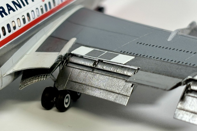 Erneut kamen die Authentic Airliner-Fenster, Vortex Generatoren und das Nazca 707-Detailset zum Einsatz, um das Modell weiter zu verfeinern. Insgesamt ist der X-Scale-Bausatz wirklich gut gelungen und der Bau hat großen Spaß gemacht. Die Details, Gravuren und die Form des Modells überzeugen. Allerdings bin ich mit dem Ergebnis nicht zu 100?% zufrieden, da insbesondere das Fahrwerk, die Triebwerkspylone und die brüchigen Decals kleine Kompromisse erforderten. Trotz dieser Punkte hat mir der Bauprozess sehr viel Freude bereitet und das fertige Modell macht in der Vitrine einen tollen Eindruck.