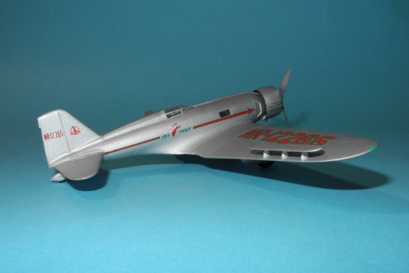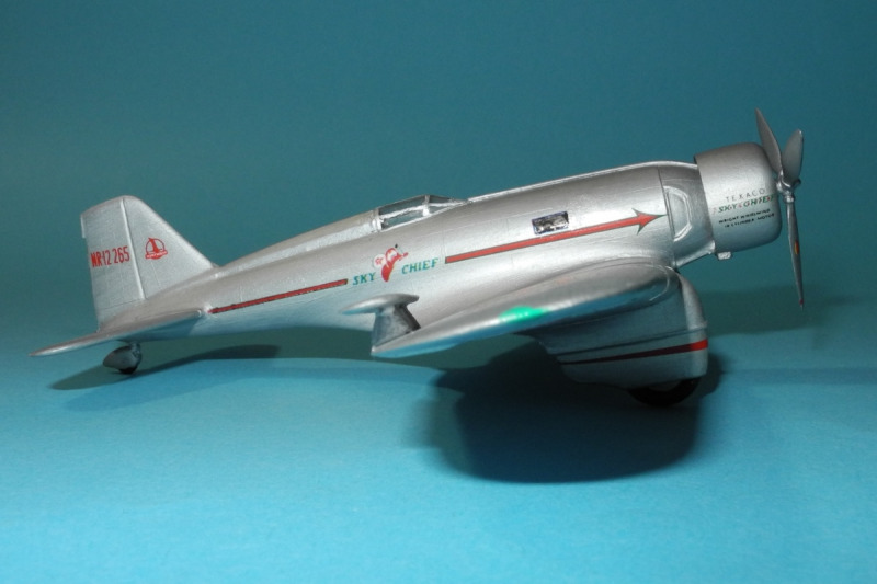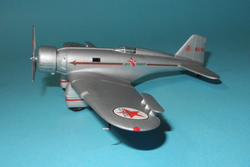 So zum Beispiel diese einsitzige, von Texaco gesponserte NR12265, die Frank Hawks zur Verfügung gestellt wurde. Am 2. Juni 1933 flog er damit in der Rekordzeit von 13 Stunden, 26 Minuten, 15 Sekunden von Los Angeles nach New York, Floyd Bennett Field - das sind fast 4.000 km. Im Jahr darauf bekam die "Sky Chief" einen neuen Eigentümer, und 1936, beim Bendix Trophy-Rennen zerlegte sich das Flugzeug in der Luft, der Pilot konnte sich gerade noch mit dem Fallschirm retten.
