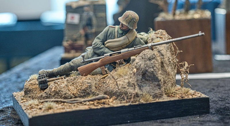 Zur Ausstellung 2023Es wurden hervorragende Modelle jedes Genres ausgestellt. Hier einige Beispiele. Los geht es mit Dioramen, Figuren und Flugzeugen. Dioramen
