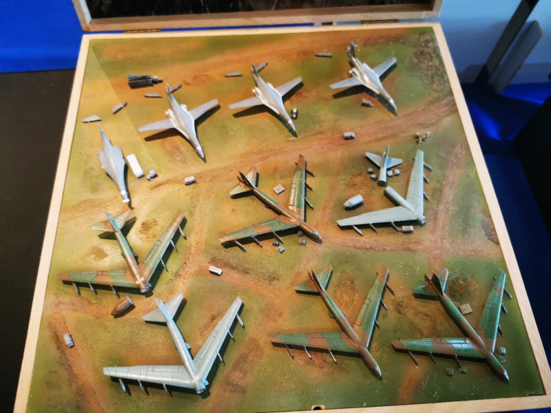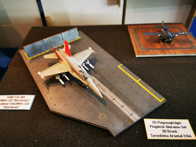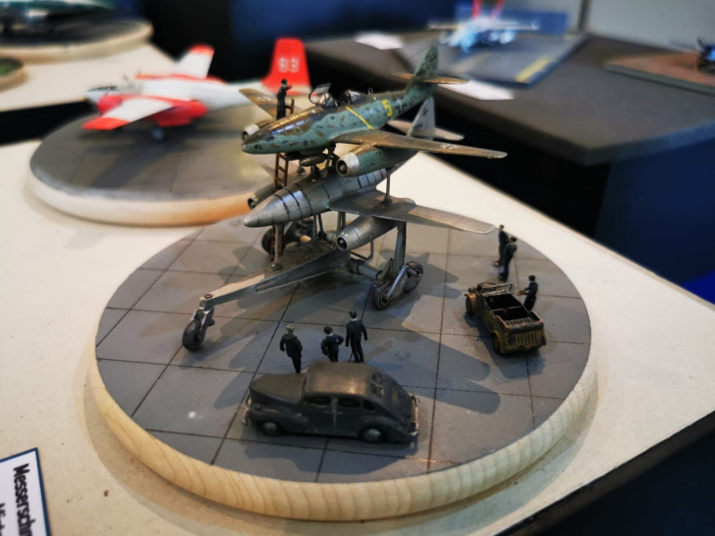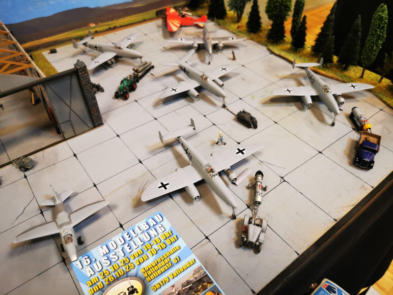 Die Reise beginnt ganz kleinWir blicken zunächst auf die kleinen Flugzeugmodelle der Ausstellung, die sich auf verschiedenen Tischen tummelten, oftmals in ein Minidiorama eingebettet. Sehenswert sind die Micromodelle allemal - man muss nur genau hinschauen! Flugzeuge und Hubschrauber 1:144 und kleiner