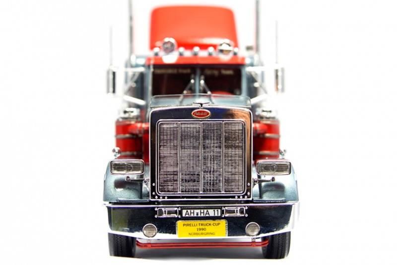 Revell hat dem Peterbilt einen Cummins KT-600 Reihensechszylinder eingepflanzt. Neben dem Cummins-Aggregat wurden auch Dieselmotoren mit sechs oder acht Zylindern von Caterpillar und Detroit Diesel in die Originale eingebaut. Der Cummins leistet ca. 600 PS aus 17 Litern Hubraum und einer Turboaufladung. Für echte Renntrucks, deren Motoren teils über 2.000 PS an die Hinterräder liefern, ist das noch ein wenig dürftig. Da ich als Kind und Jugendlicher mit meinen Eltern regelmäßig den Truck-Grand-Prix auf dem Nürburgring besucht habe und so die Definition eines „Racing Trucks“ recht genau kenne, habe ich mich dazu entschlossen, mein Modell als straßentauglichen LKW zu bauen. Startnummern, Sportauspuffe und Schalensitz sucht man daher vergeblich.