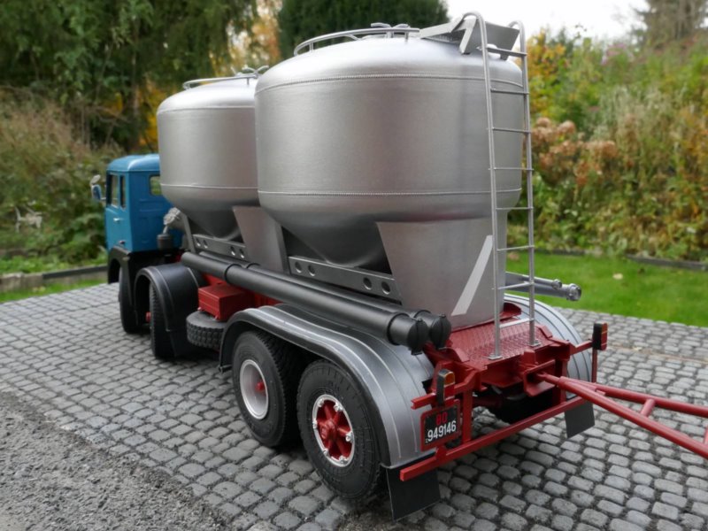 Alles andere, angefangen beim Chassis über Räder, Achsen und natürlich die Silos entstand im Eigenbau. Erschwerend kam hinzu, dass es eine Vielzahl an Varianten dieses Fiats gab, so dass die Zuordnung der Originalfotos zu einem bestimmten Typ für einen Laien schier unmöglich ist.