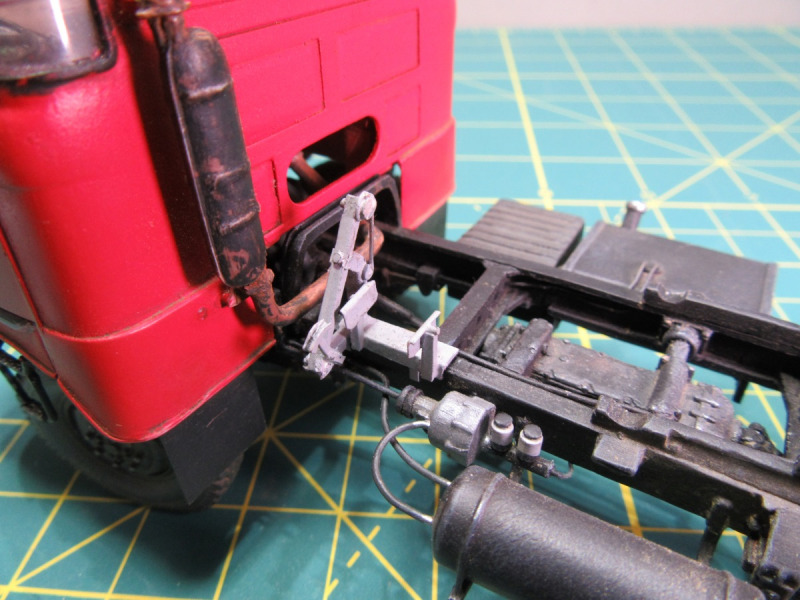 Das Fahrerhaus lackierte ich vor dem Zusammenbau. Wie damals legten viele, wenn nicht sogar alle Fahrer über die Motorhaube noch einige Decken, um den Geräuschpegel etwas zu mindern. Die habe ich natürlich auch nachgebildet, ebenso die Haltegriffe und die Hebel für die Differenzialsperren. Natürlich durfte auch nicht seine alte Tasche fehlen, wo sich seine „Fettbämme“ und was zu Trinken befanden. Das Ätzteil „W50L“ habe ich noch um den Buchstaben „A“ erweitert.