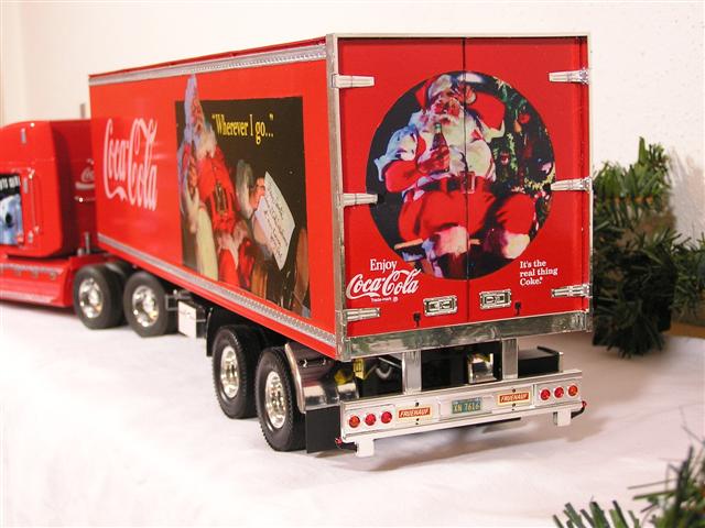 Es handelt sich hierbei um einen Freightliner Coca-Cola Weihnachtstruck, den ich versucht habe darzustellen. Leider bin ich nicht so der Elektronik-Freak. Von daher fehlt die eigentliche Weihnachtsbeleuchtung des Trucks. Doch auch ohne „Strom“ finde ich macht er sich ganz gut. Das Modell ist im Maßstab 1:24 und besteht aus zwei Revell-Bausätzen. Es handelt sich im Einzelnen um einen Freightliner FLD120 der inzwischen leider nicht mehr erhältlich ist. Ebenso nicht mehr erhältlich ist der sogenannte „Box-Trailer“ des Hauses Revell. Geschmückt mit selbsterstellten Decals auf meinem Tintenstrahl-Drucker und speziellem Decal-Papier gedruckt. Die Motive sind wohl hinlänglich aus verschiedenen Werbungen des Coca-Cola Konzerns bekannt. Es hat mir sehr viel Spaß gemacht, dieses Modell eines Weihnachtstrucks zu bauen. Jetzt zur Adventszeit macht er sich obendrein gut als Deko in der Wohnung. In diesem Sinne wünsche ich allen eine frohe und stimmungsvolle Advents- und Weihnachtszeit. Weitere Bilder