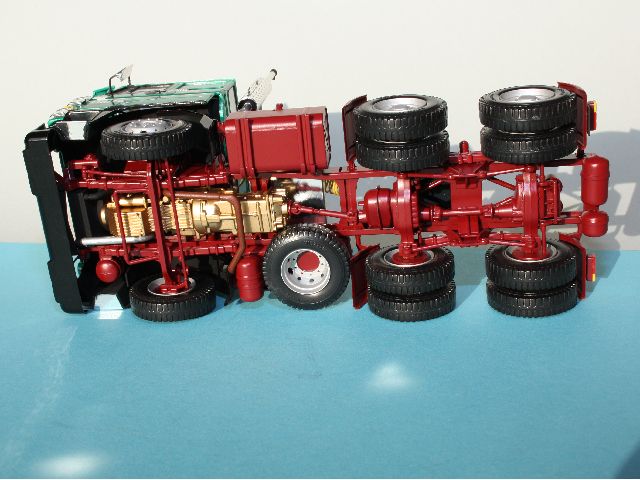 Das hier gezeigte Modell hat auch schon einige Jahre auf dem Buckel. Die 330 PS-Variante des DAF wurde komplett ooB gebaut, allerdings verzichtete ich auf einen Teil der Dekorstreifen und erstellte die Firmenbeschriftung mit Letraset. Lackiert wurde in Revell 97, 331 und 94. Das Ausmalen der Rechtecke im Kühlergrill war auch beim Original sehr beliebt.