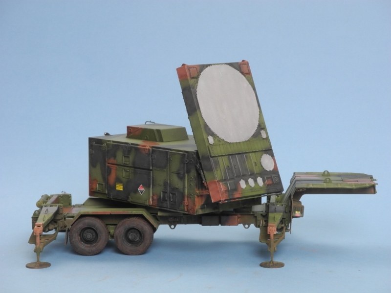Das ModellDie positiven Erfahrungen mit dem MTVR-Truck sowie der M198 Haubitze aus dem Hause Trumpeter setzten sich auch bei diesem Modell fort. Hier passte alles prima zusammen; zwar war ich hinsichtlich des (doch sehr hohen) Detailierungsgrades bei den Auslegern zunächst sehr skeptisch - doch alles verlief vollkommen reibungslos. Wie bei den vorangegangenen Militärmodellen entschied ich mich wieder für das dreistufige (grün-braun-schwarz) Tarnschema und griff hierfür auf das entsprechende Farbsortiment von Tamiya zurück. Anschließend noch etwas Weathering und schon konnte sich das Radar in meine kleine 1:35iger Sammlung einreihen.
