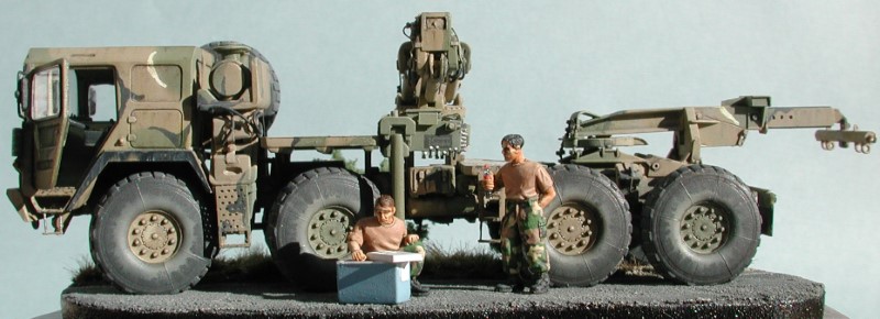Mein „M1001“ erhielt eine Abschleppvorrichtung im Eigenbau. Einige Fotos im Internet (Zeitgenössisch und Restauration) zeigten die hier im Modell realisierte Version. Eigentlich waren die Versionen M1002 und M1013 als sogenannte Recovery Fahrzeuge (Quelle: Panzerbär) von der US Army und teilweise auch von der US Air Force eingesetzt worden. Ob mein Modell die Bezeichnung M1013 tragen sollte oder nur eine M1001 Feld-Modifikation ist, vermag ich nicht mit Sicherheit zu sagen.