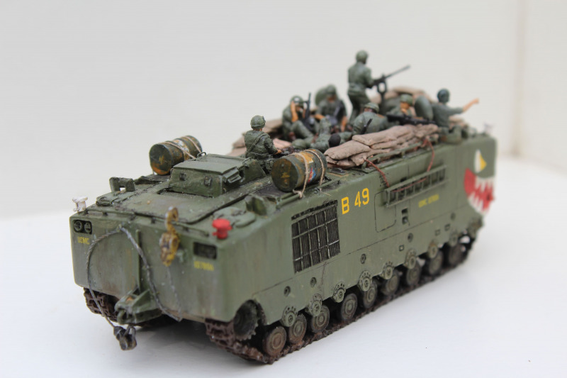 Bei meiner Recherche, welche Fahrzeuge die US-Streitkräfte während des Vietnam-Krieges eingesetzt haben, bin ich unter anderem auf den amphibischen Truppentransporter LVTP gestoßen. Diese Fahrzeuge stellten die Nachfolge der bekannten LVTs aus dem Zweiten Weltkrieg und den Vorläufer der aktuellen AAV7 Transporter dar. Das Ein- und Aussteigen erfolgte über die große Luke vorne und die Ladeluke auf dem Fahrzeug.