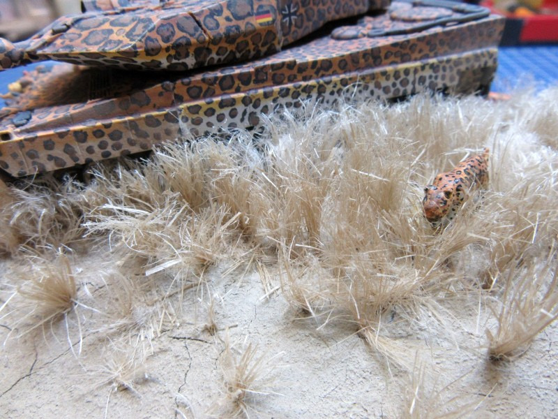 Schwierig ist es, ein richtigen Leoparden (Tier) in 1:72 zubekommen. So baute ich ihn mir selbst. Die beiden Leos wollte ich im Lebensraum des "kleinen" darstellen.