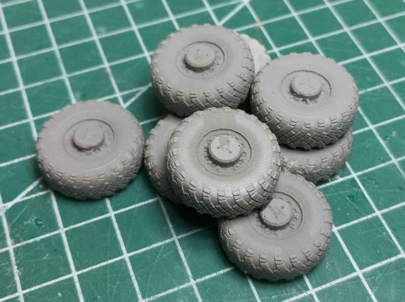 Leider sind die russischen Aftermarket-Sets schwer erhältlich, so dass ich beinahe auf die Resin-Räder verzichtet hätte, dafür aber einen kompletten Radsatz von Armada Hobby besorgt habe (András, danke für die Hilfe). Also hatte ich die Resinräder. Obwohl die Gummireifen des Sets schön sind, sehen die robusten Resinräder besser aus.