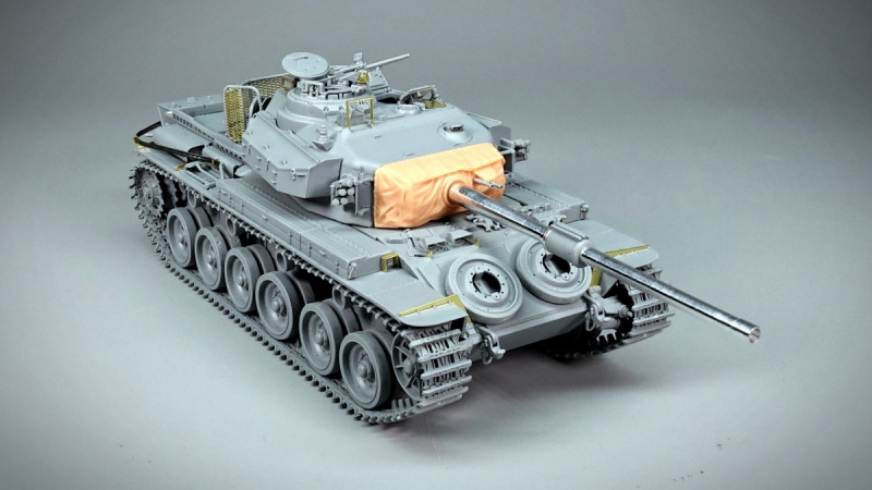 Die beiliegenden seitlichen Nebelwurfanlagen kann man, muss man aber nicht montieren. Obwohl ich mich für die Nebelwurfanlagen entschied, zeigen viele damalige Originalbilder Centurions auf, bei denen die besagten Wurfanlagen komplett entfernt worden waren. Bei den beiden Antennen griff ich auf Spritzkanülen aus meiner Restkiste zurück, wobei mit den fehlenden Antennen im Bausatz ein weiteres Haar in der Suppe gefunden wurde.